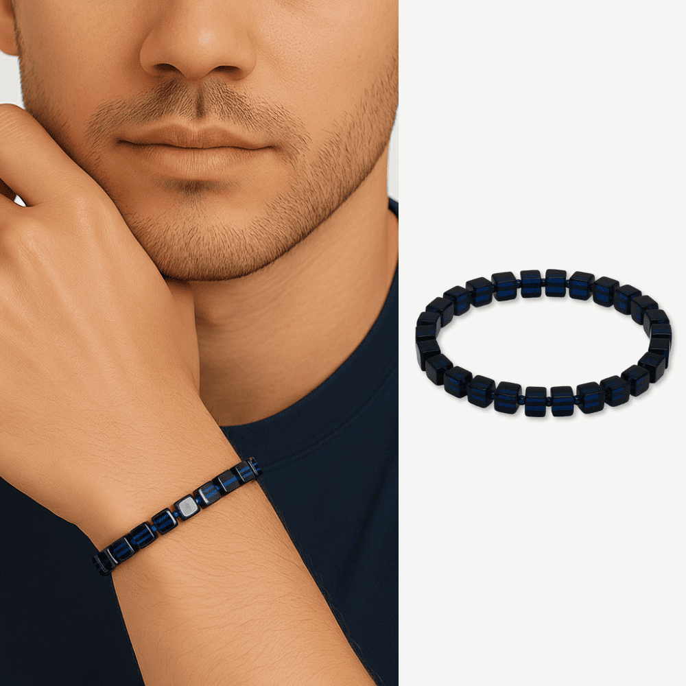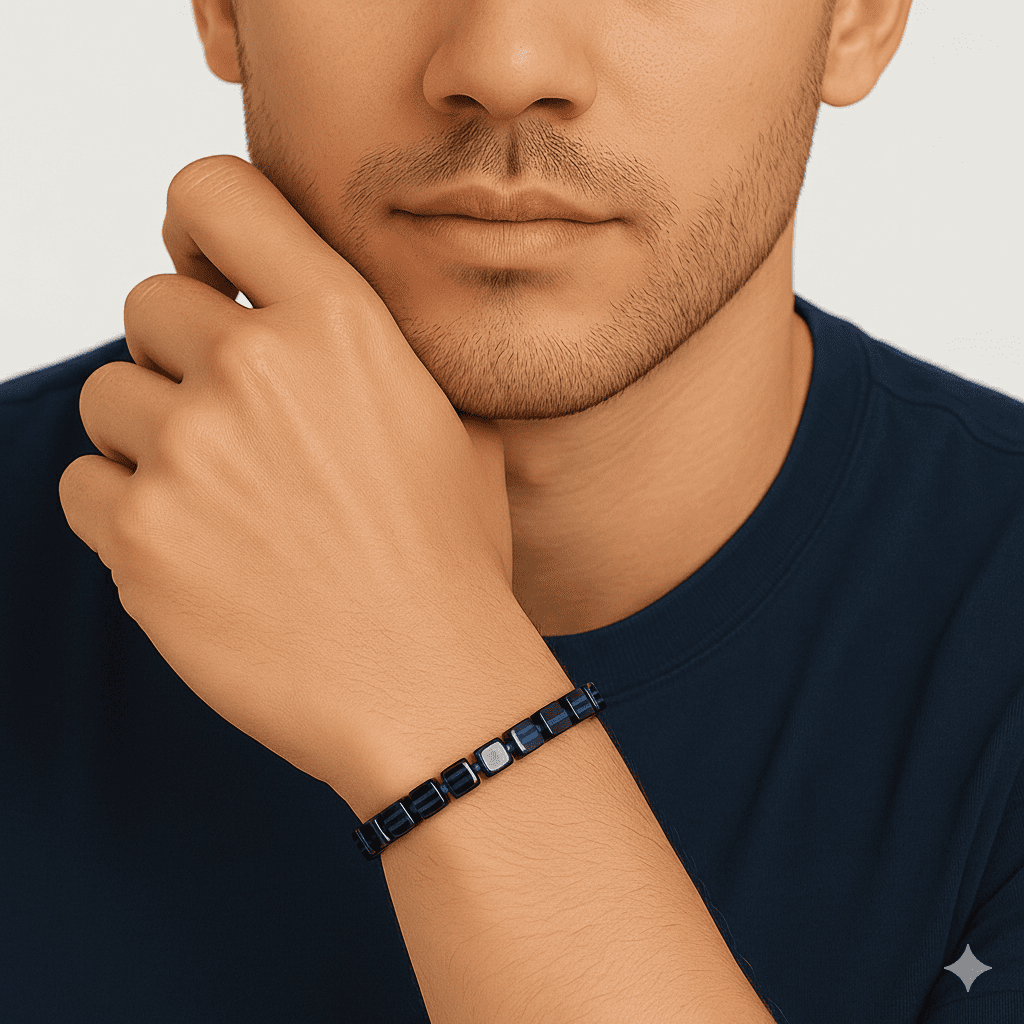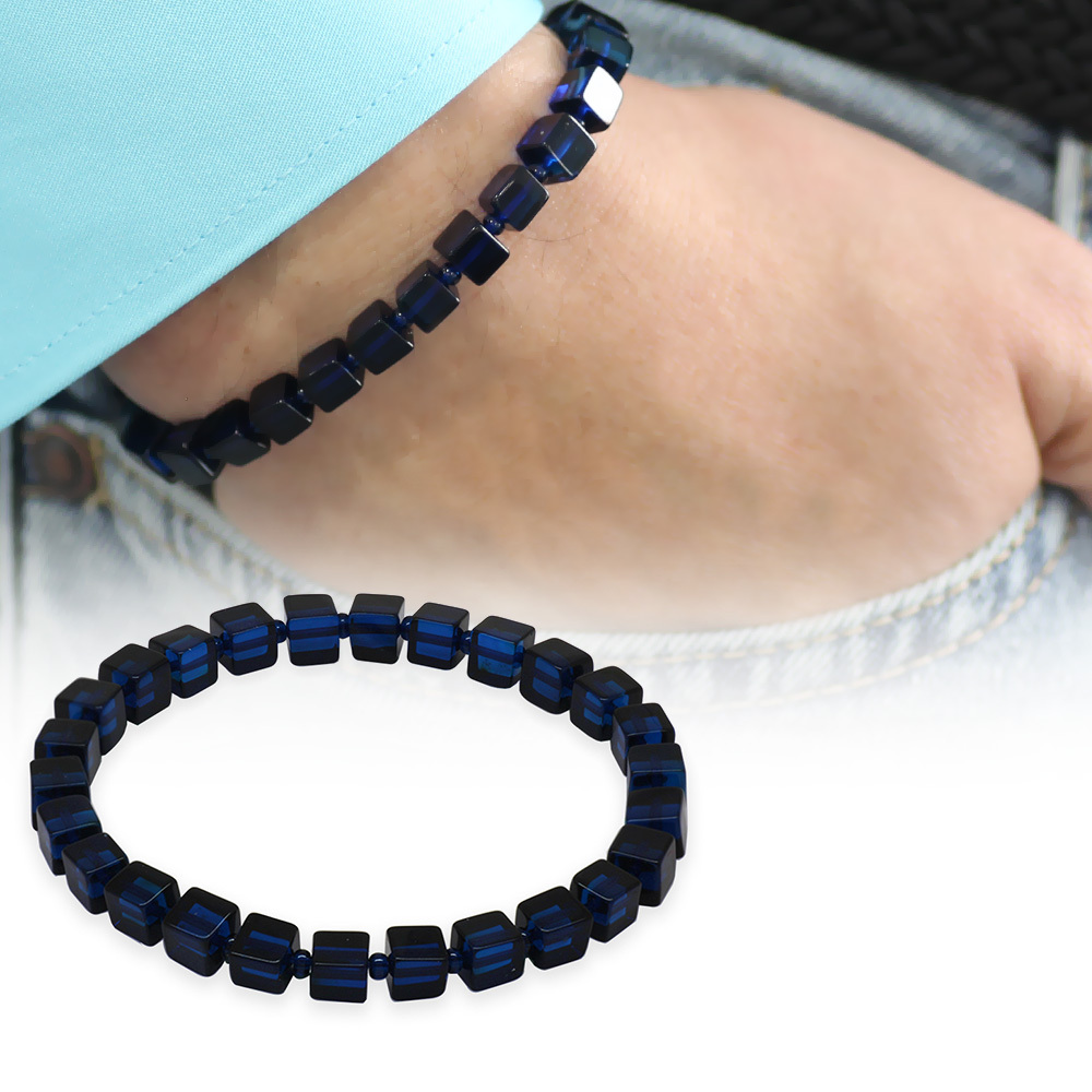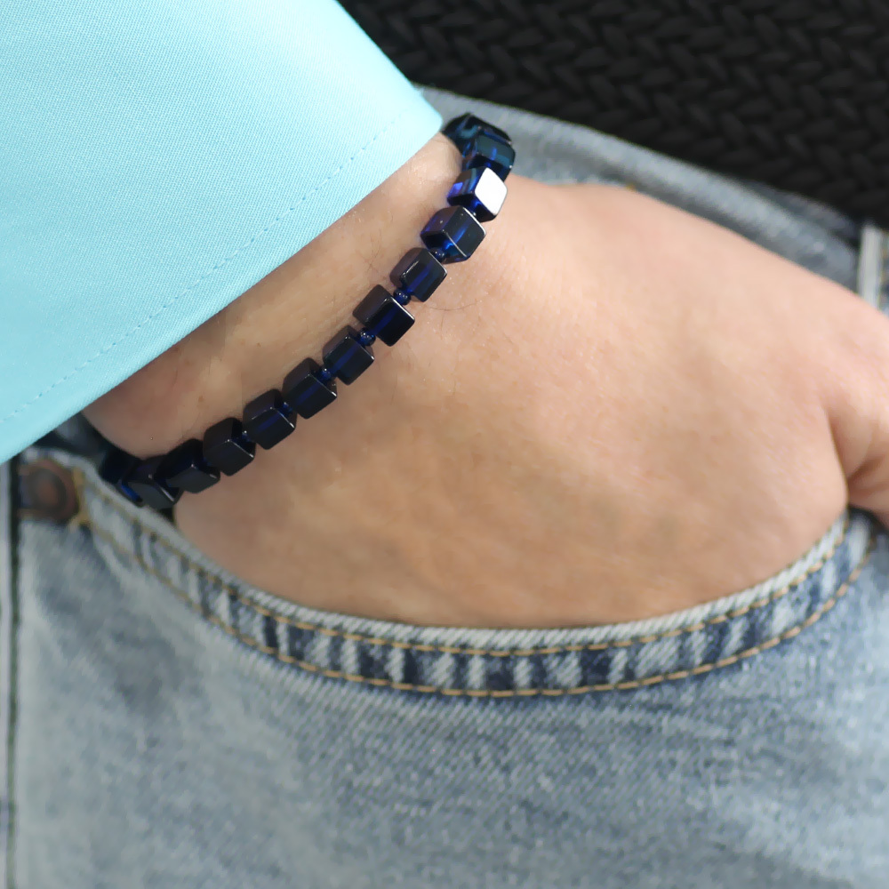 Lacivert Renk Küp Kesim Doğal Damla Kehribar Erkek Bileklik