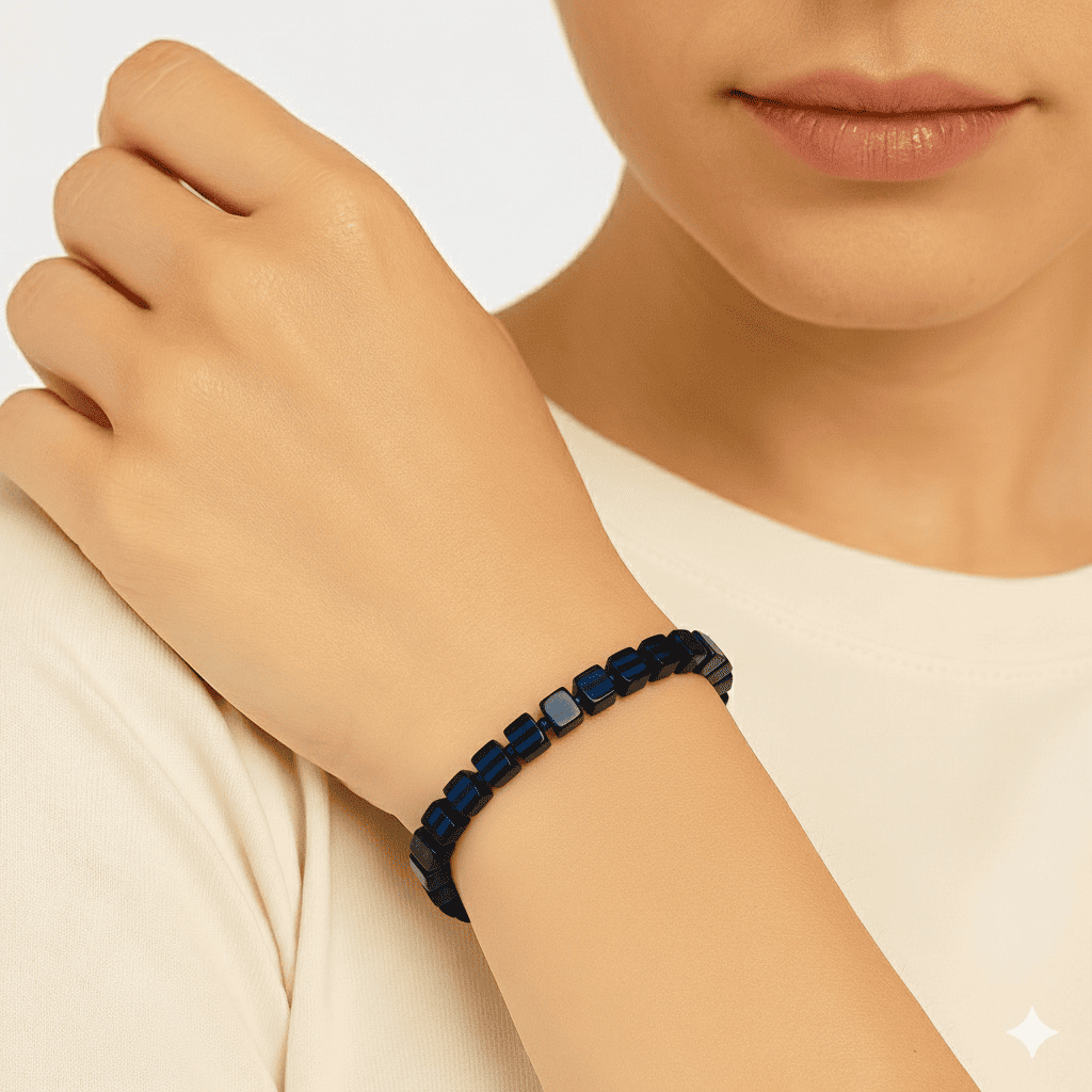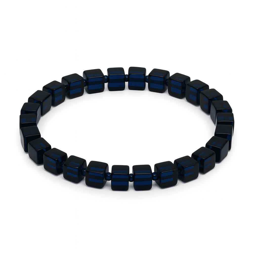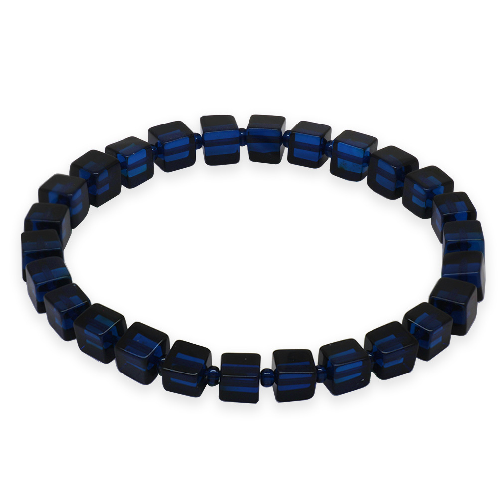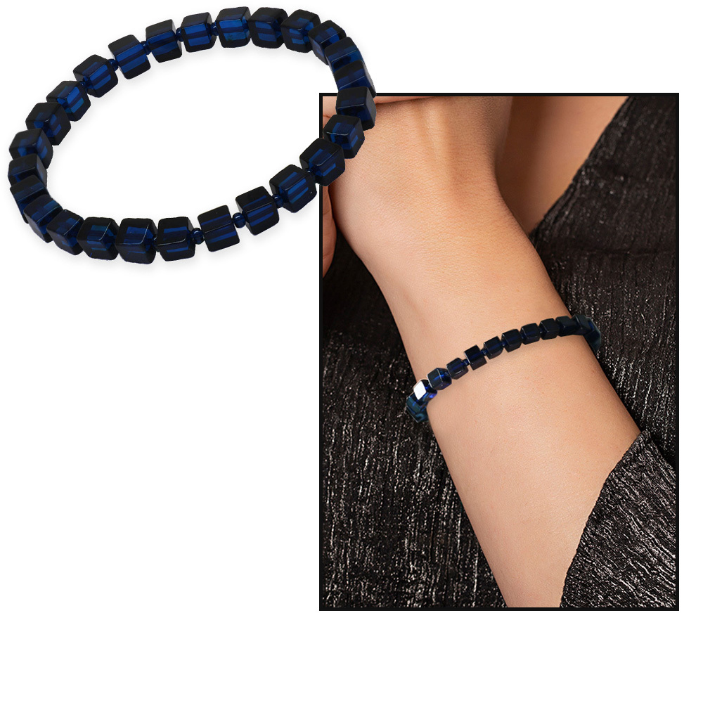 Lacivert Renk Küp Kesim Doğal Damla Kehribar Kadın Bileklik