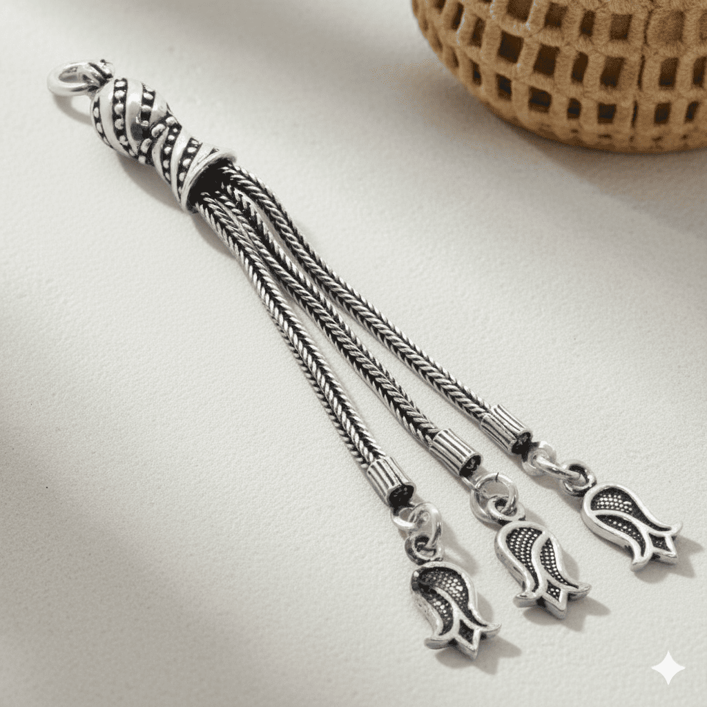 Lale Tasarım Üç Kamçılı 925 Ayar Gümüş Püskül