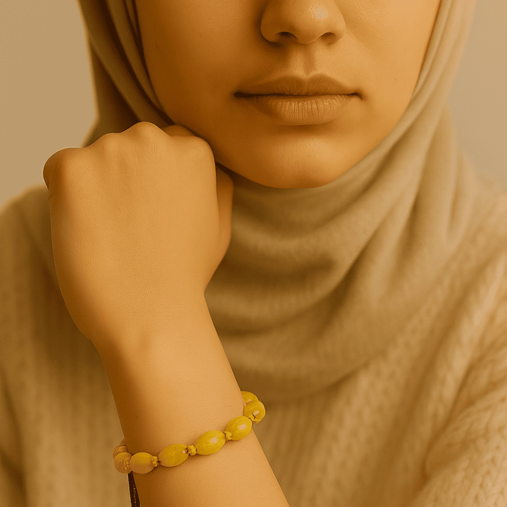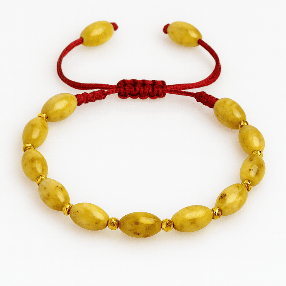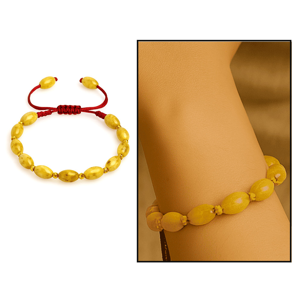 Makrome Örgülü Arpa Kesim Sarı Beyaz Renkli King Seccer Damla Kehribar Kadın Bileklik