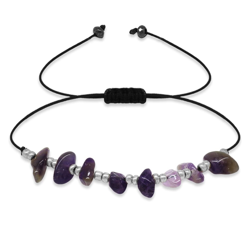 Makrome Örgülü Basic Model Ametist Doğaltaş Kadın Bileklik
