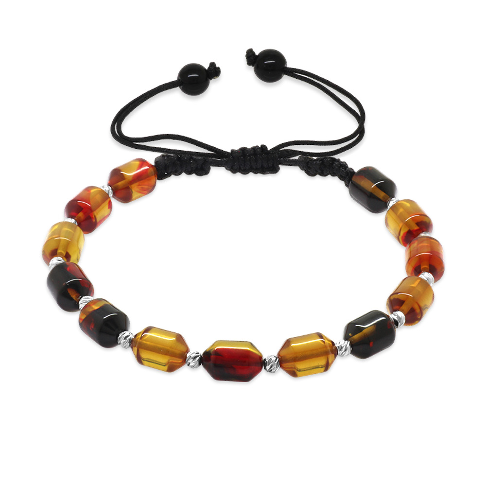 Makrome Örgülü Beyaz Dorika Top Süslemeli Bala Siyah Ateş Kehribar Erkek Bileklik