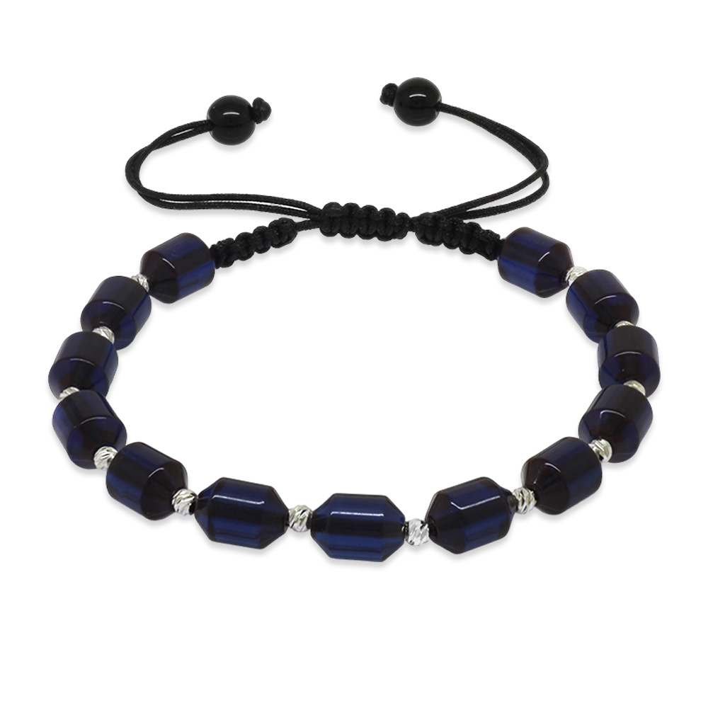 Makrome Örgülü Beyaz Dorika Top Süslemeli Koyu Lacivert Sıkma Kehribar Erkek Bileklik