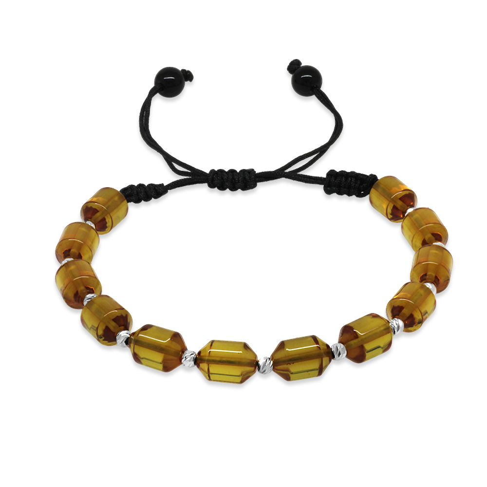 Makrome Örgülü Beyaz Dorika Top Süslemeli Sarı Ateş Kehribar Erkek Bileklik