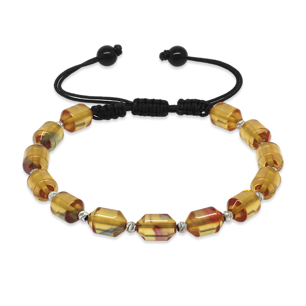 Makrome Örgülü Beyaz Dorika Top Süslemeli Şeffaf Bonibon Ateş Kehribar Erkek Bileklik