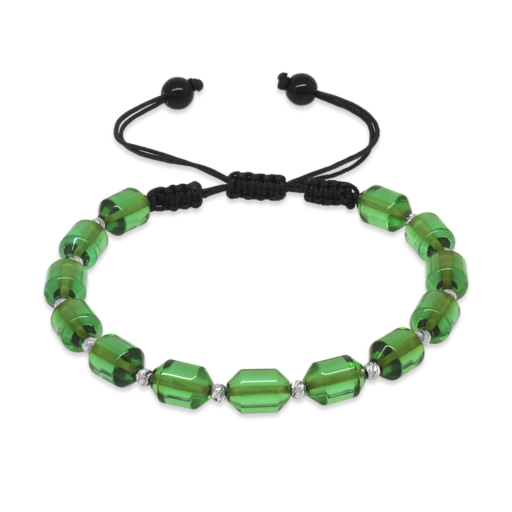 Makrome Örgülü Beyaz Dorika Top Süslemeli Su Yeşili Ateş Kehribar Erkek Bileklik