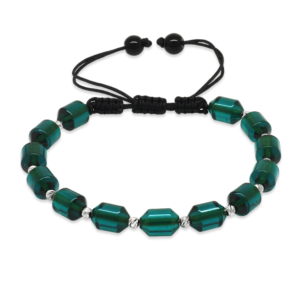 Makrome Örgülü Beyaz Dorika Top Süslemeli Turkuaz Ateş Kehribar Erkek Bileklik
