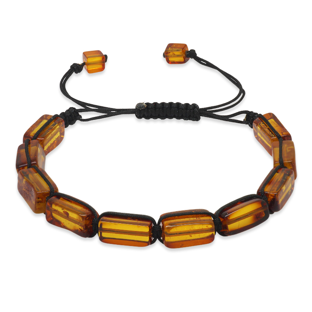Makrome Örgülü Dikdörtgen Kesim Bal Rengi Doğal Damla Kehribar Kadın Bileklik - 1