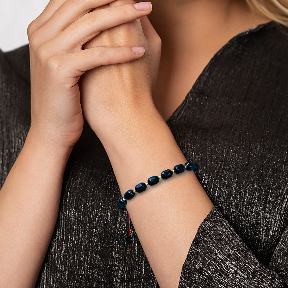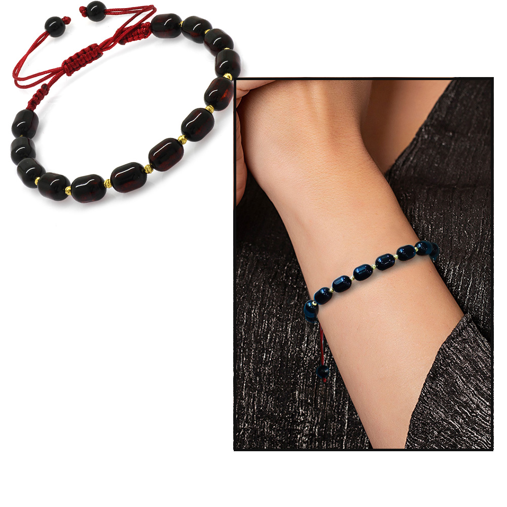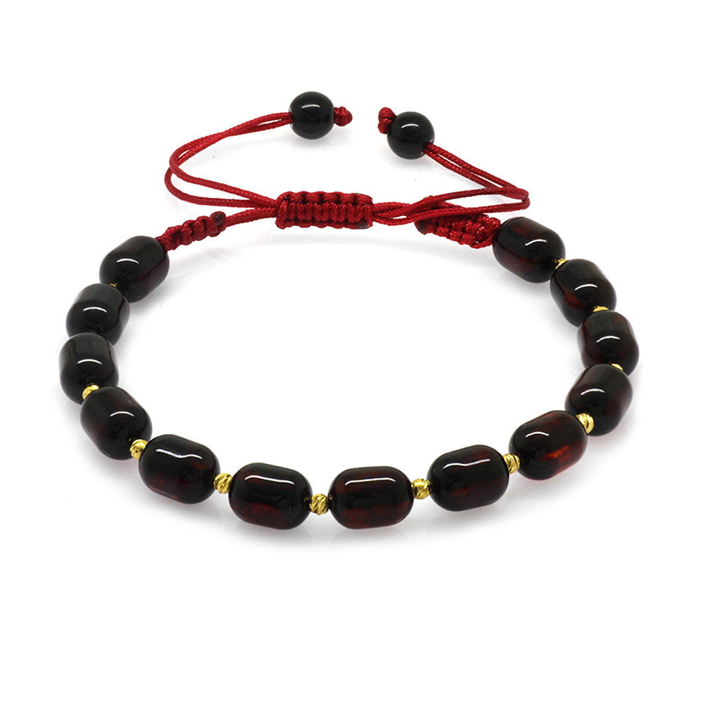 Makrome Örgülü Dorika Top Süslemeli Kapsül Kesim Koyu Kırmızı Renk Damla Kehribar Kadın Bileklik - 1