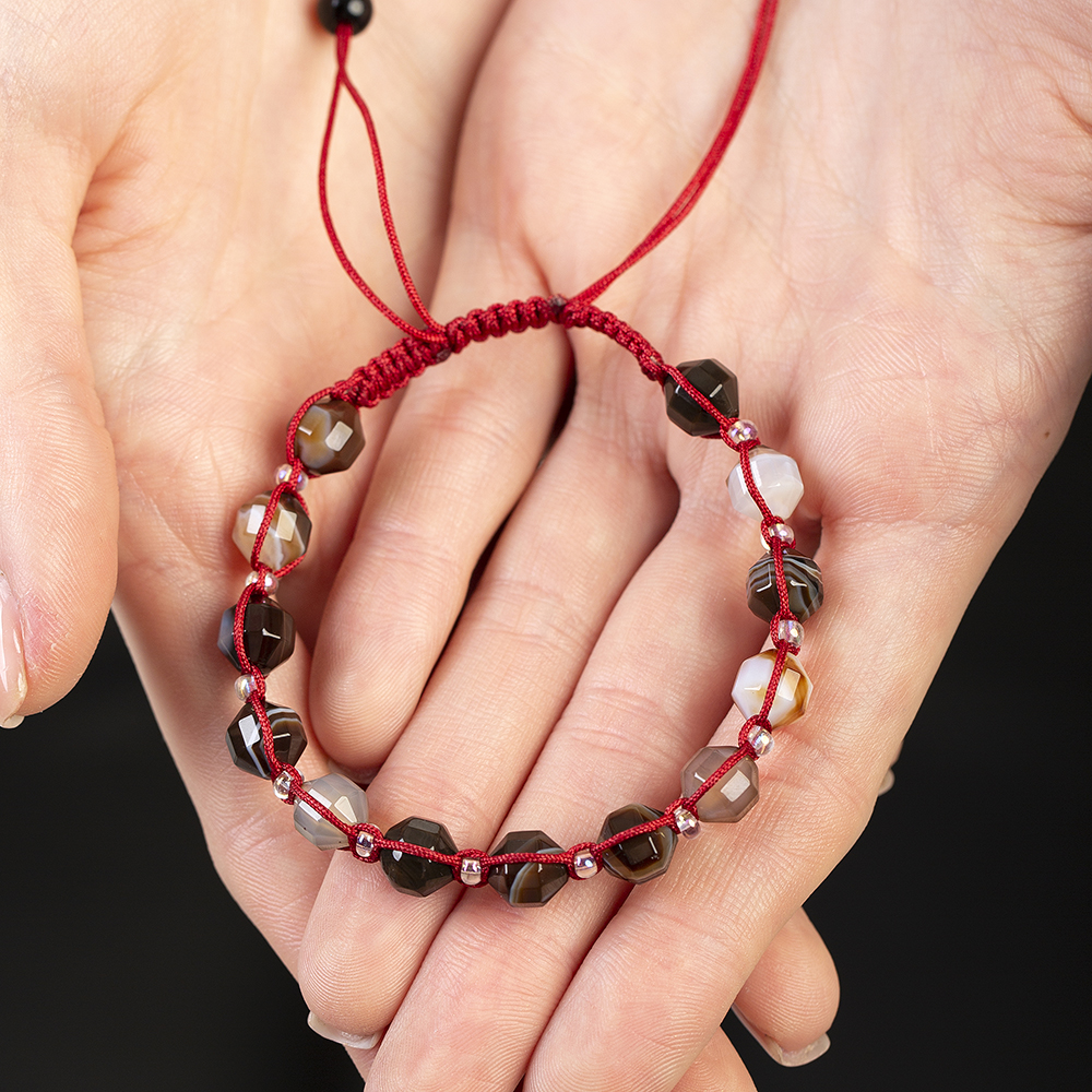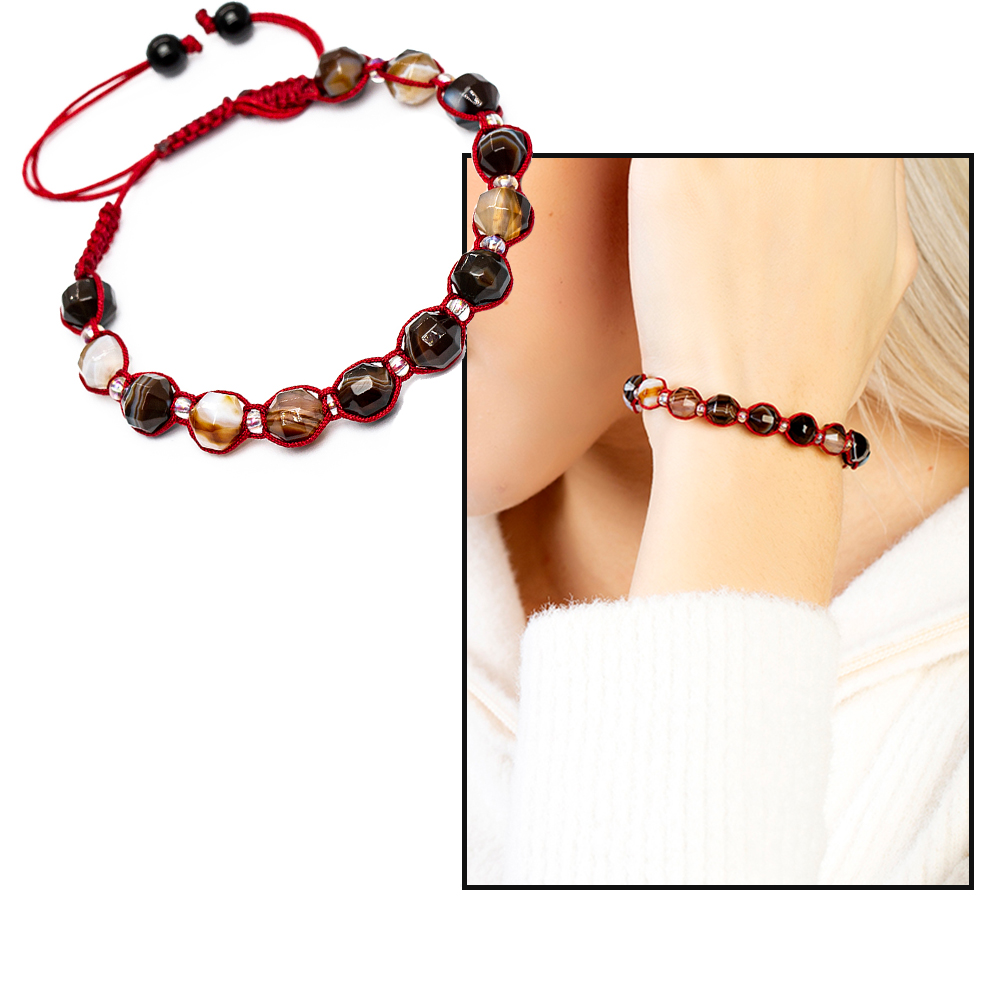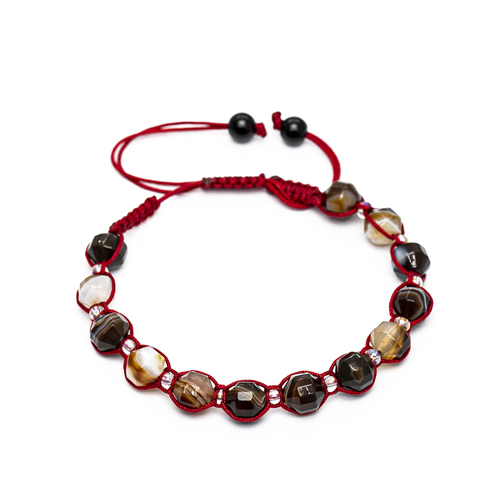 Makrome Örgülü Faset Kesim Madagaskar Akik Doğaltaş Kadın Bileklik