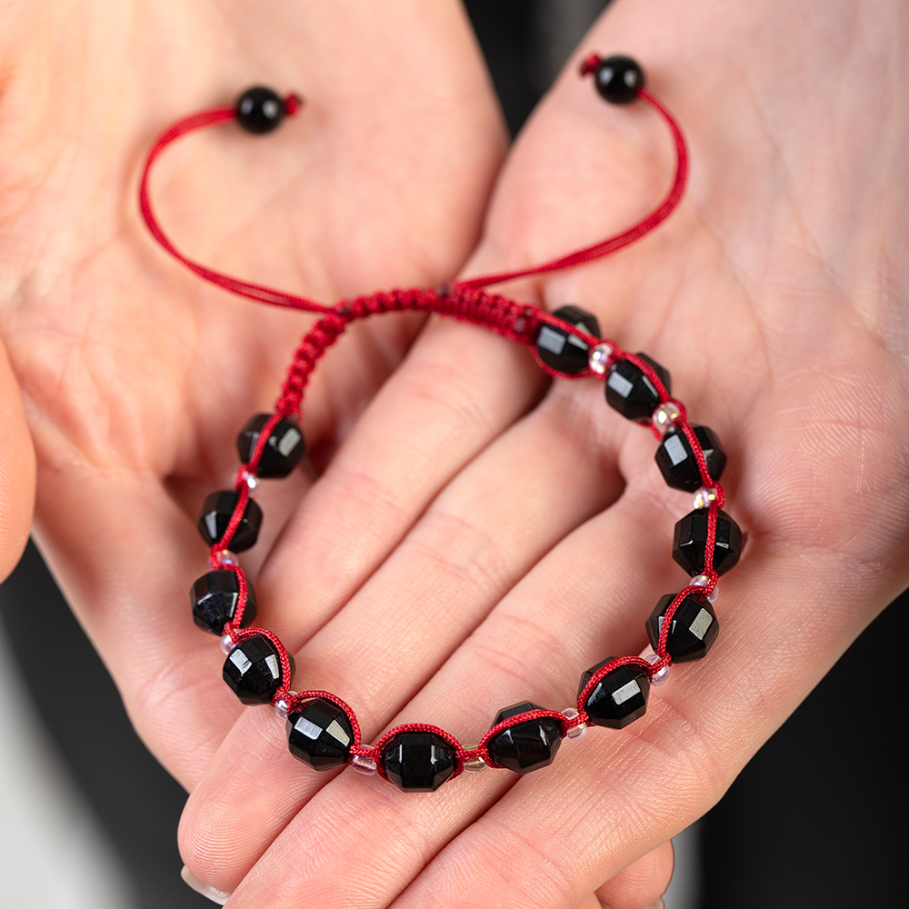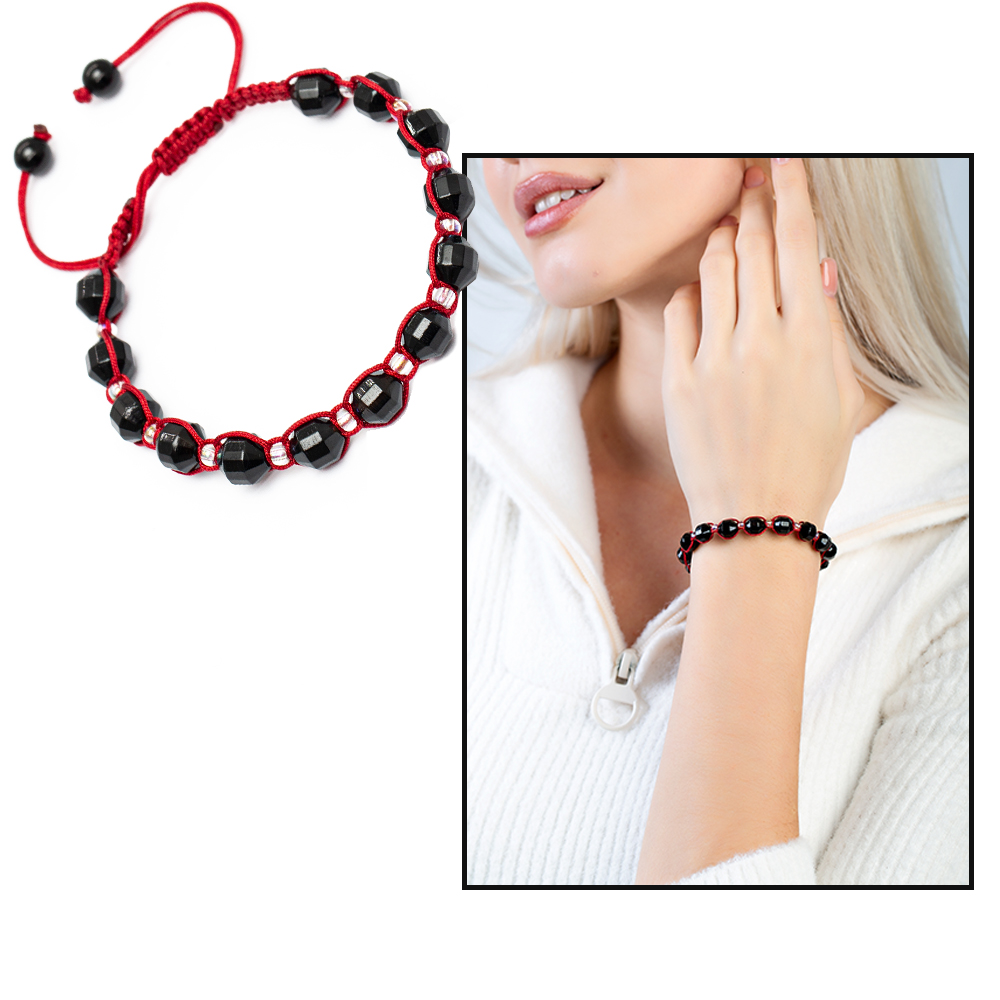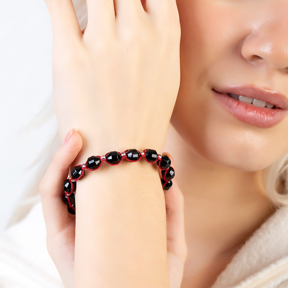Makrome Örgülü Faset Kesim Oniks Doğaltaş Kadın Bileklik