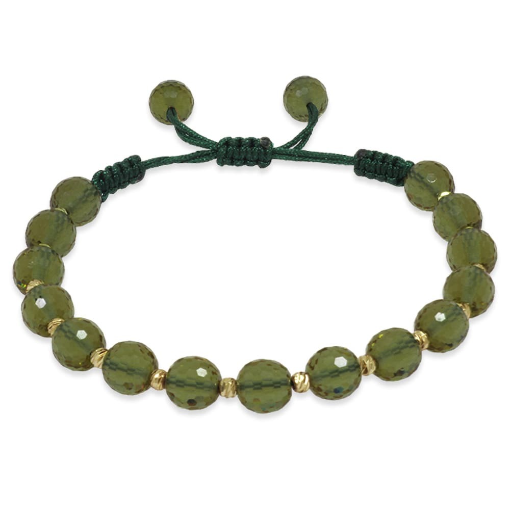 Makrome Örgülü Altın Renk Dorika Top Süslemeli Küre Kesim Fasetalı Zultanit Taşı Kadın Bileklik
