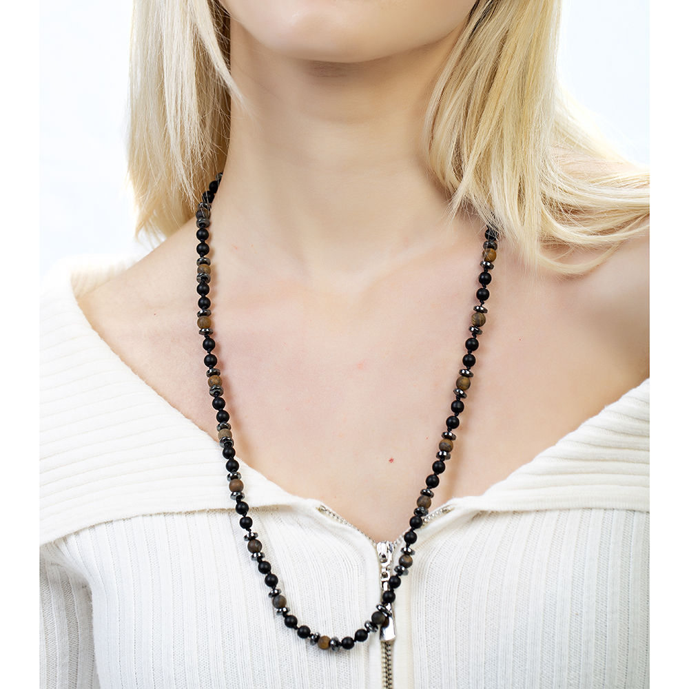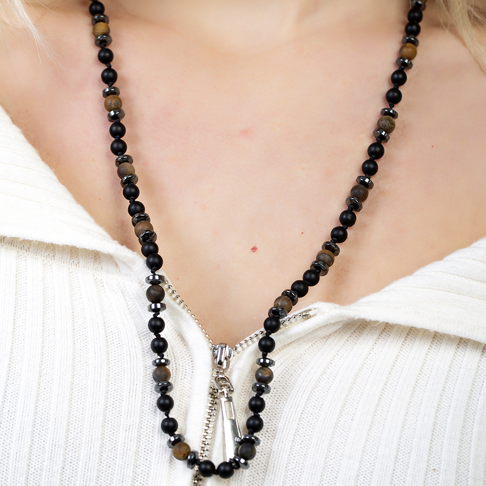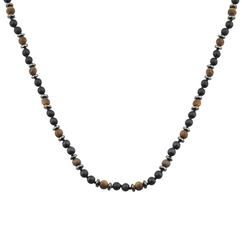 Makrome Örgülü Kaplan Gözü Oniks Hematit Kombinli Doğaltaş Kadın Kolye