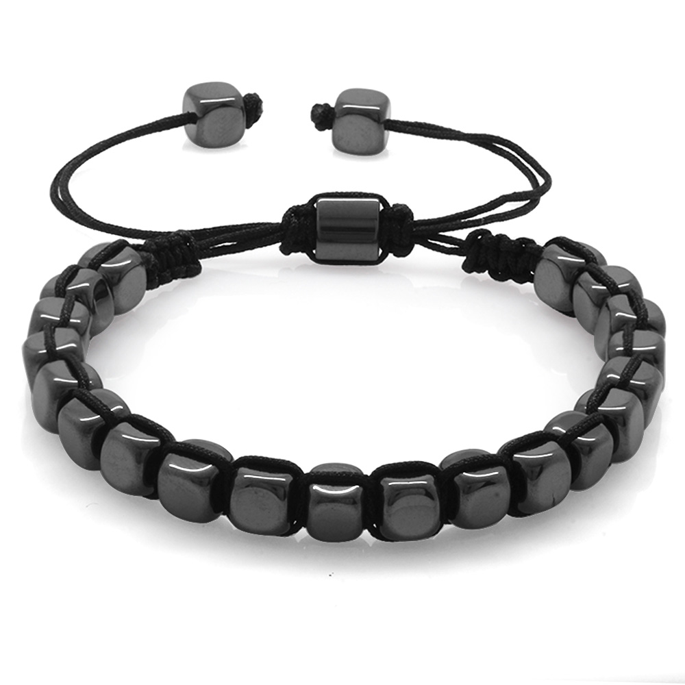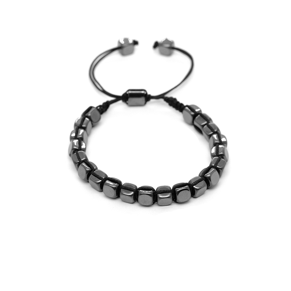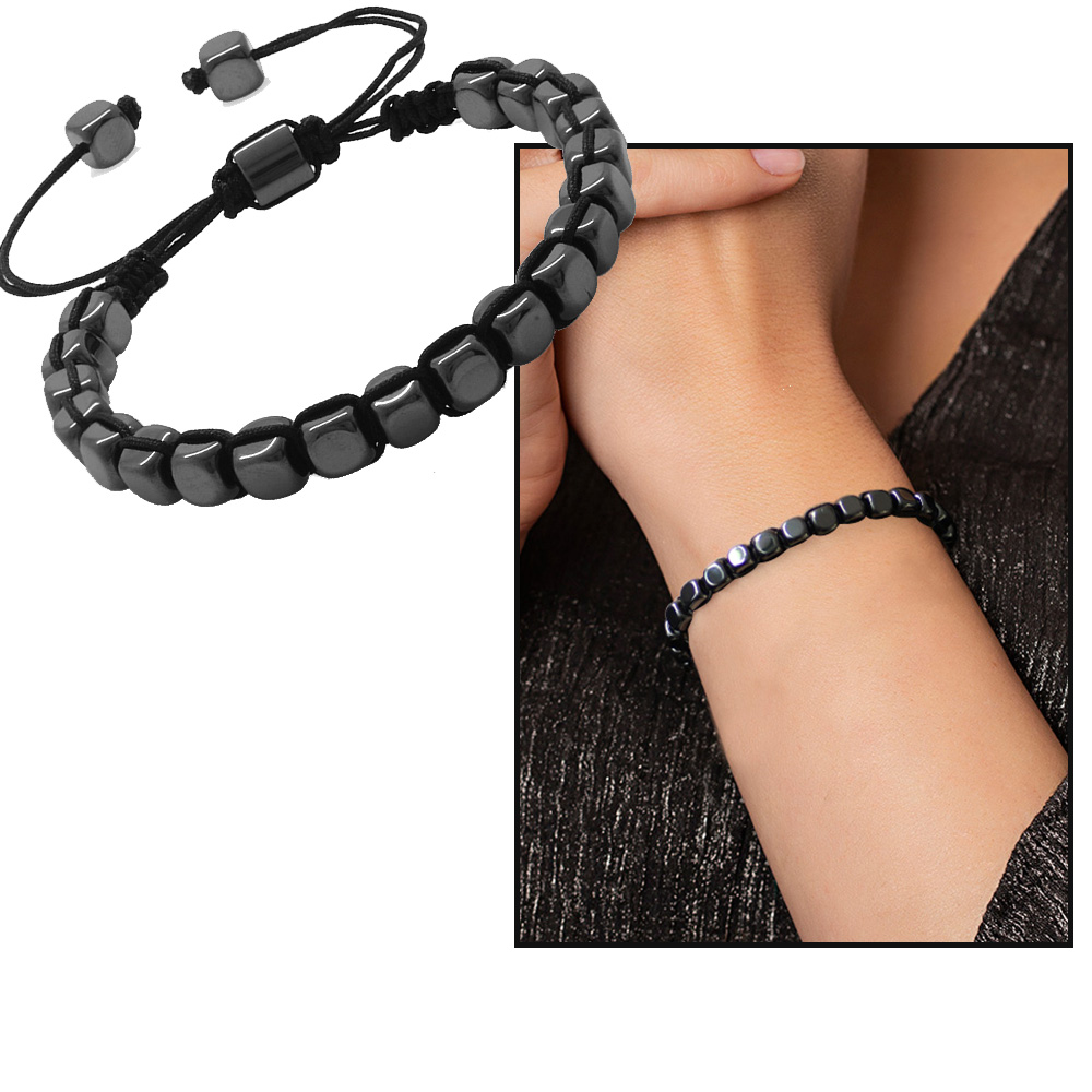 Makrome Örgülü Küp Kesim Siyah Renk Hematit Doğaltaş Kadın Bileklik