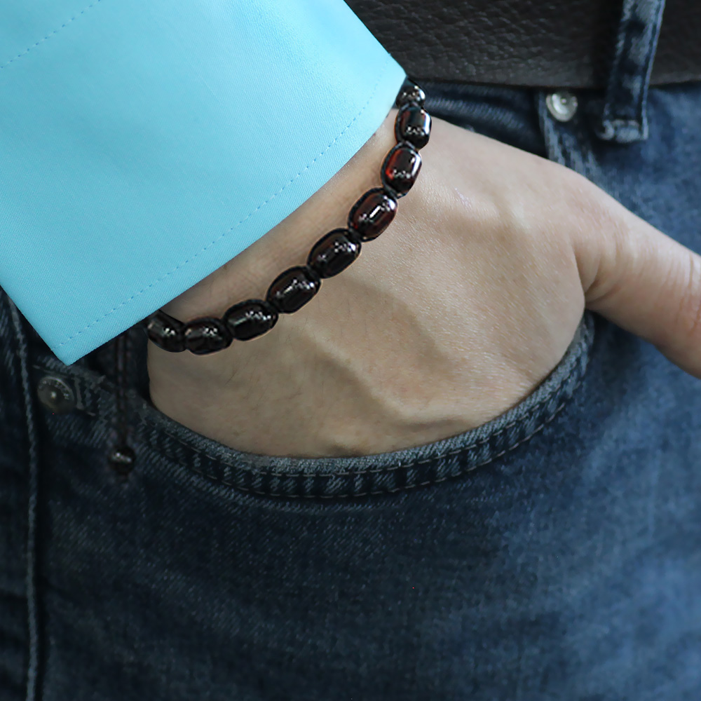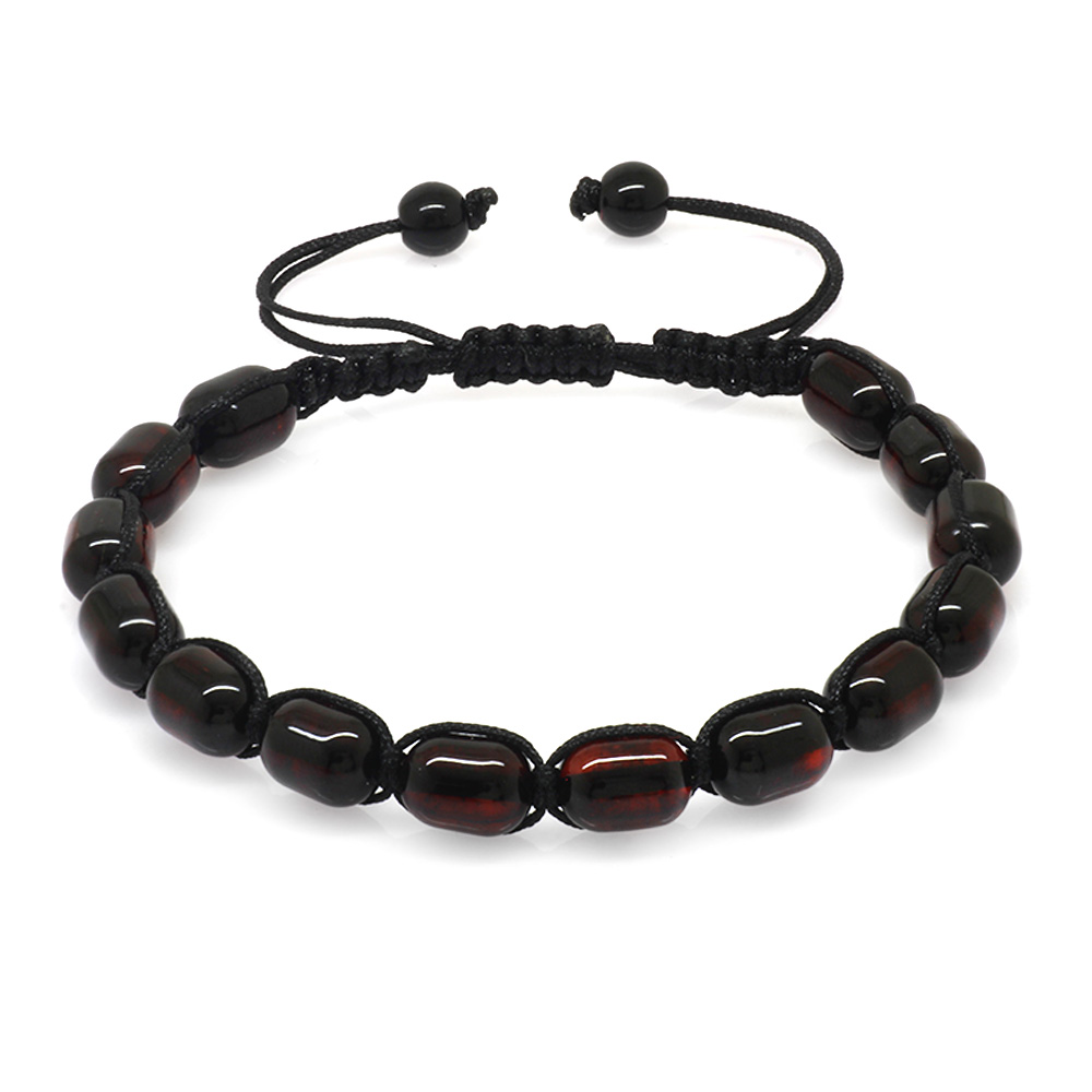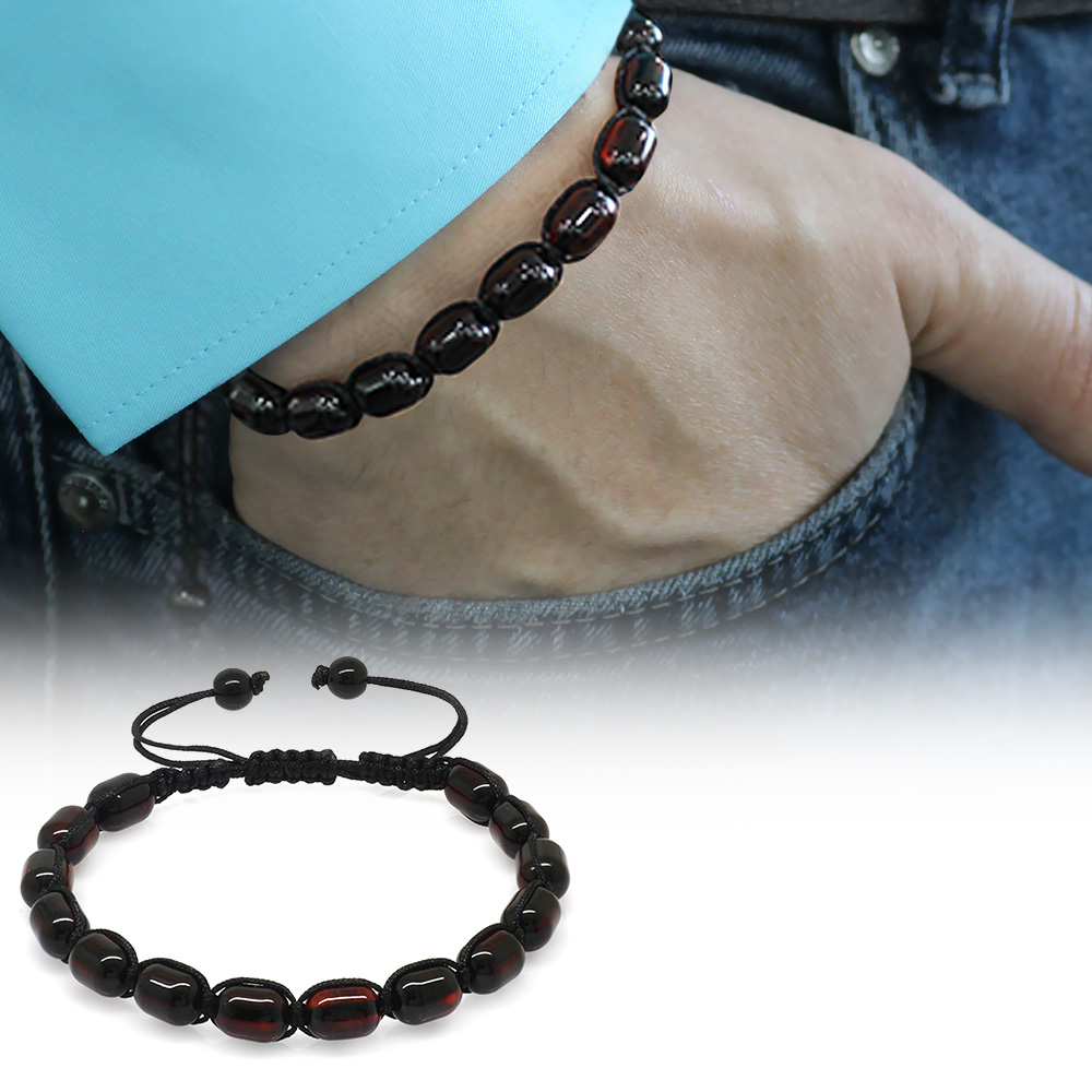 Makrome Örgülü Kapsül Kesim Koyu Kırmızı Renk Damla Kehribar Erkek Bileklik