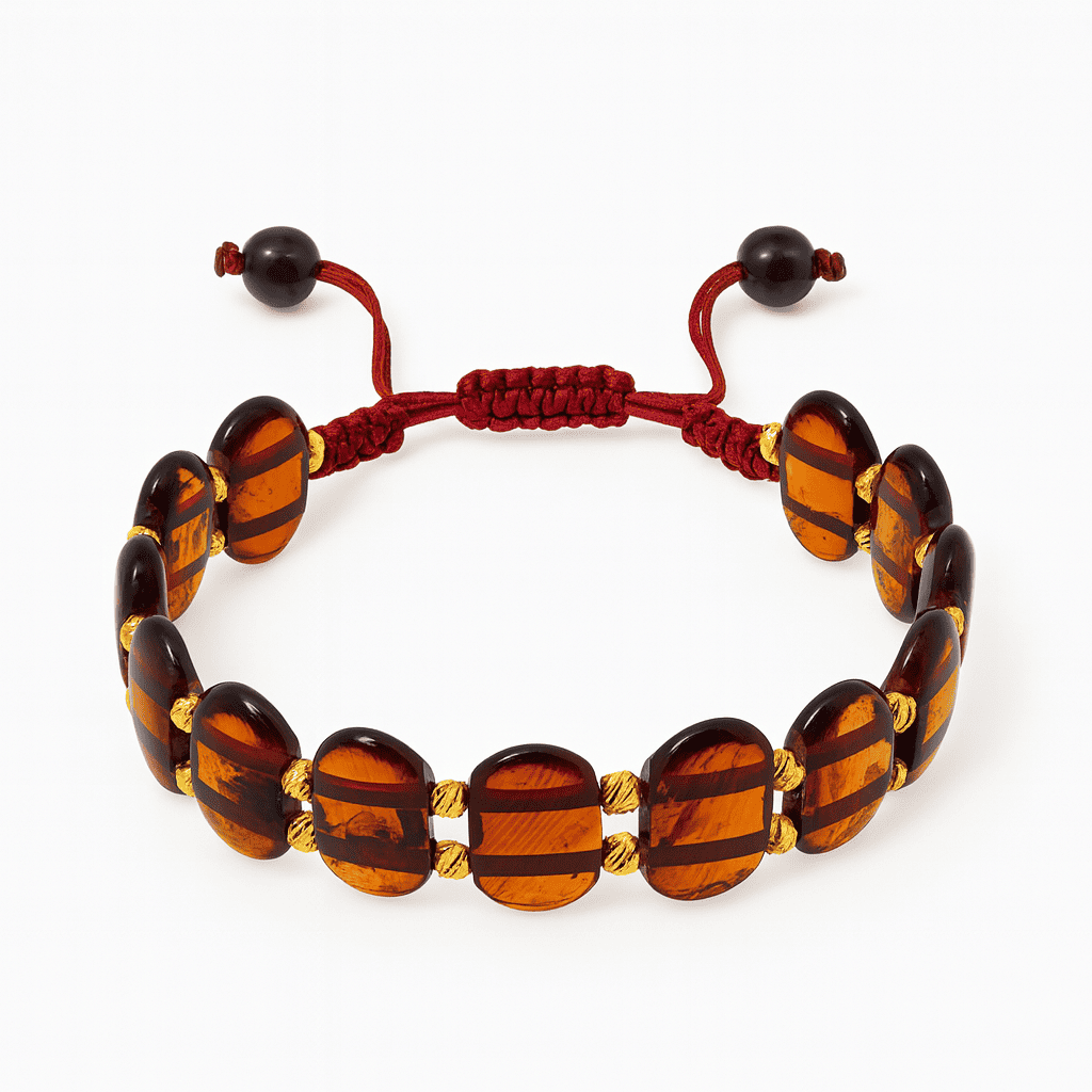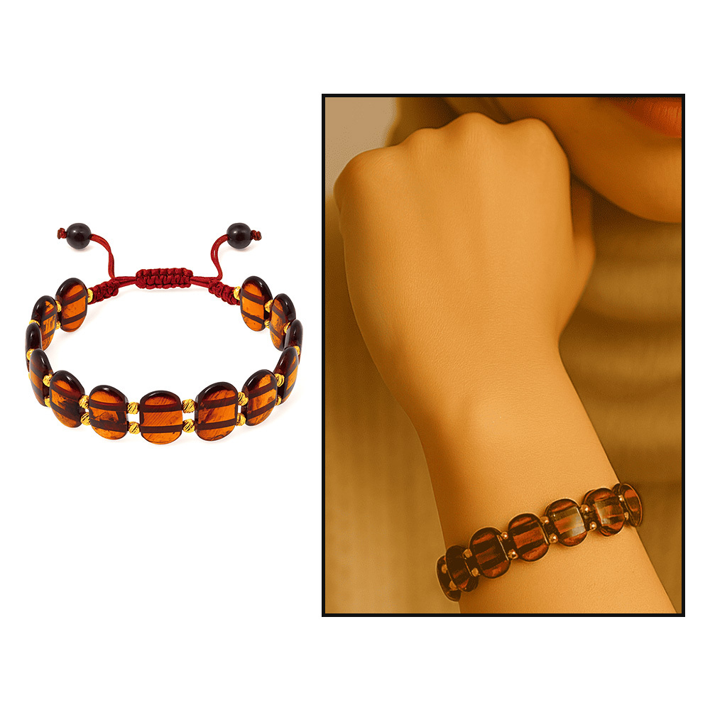 Makrome Örgülü Kırmızı Renkli Doğal Damla Kehribar Rolex Kadın Bileklik - 1