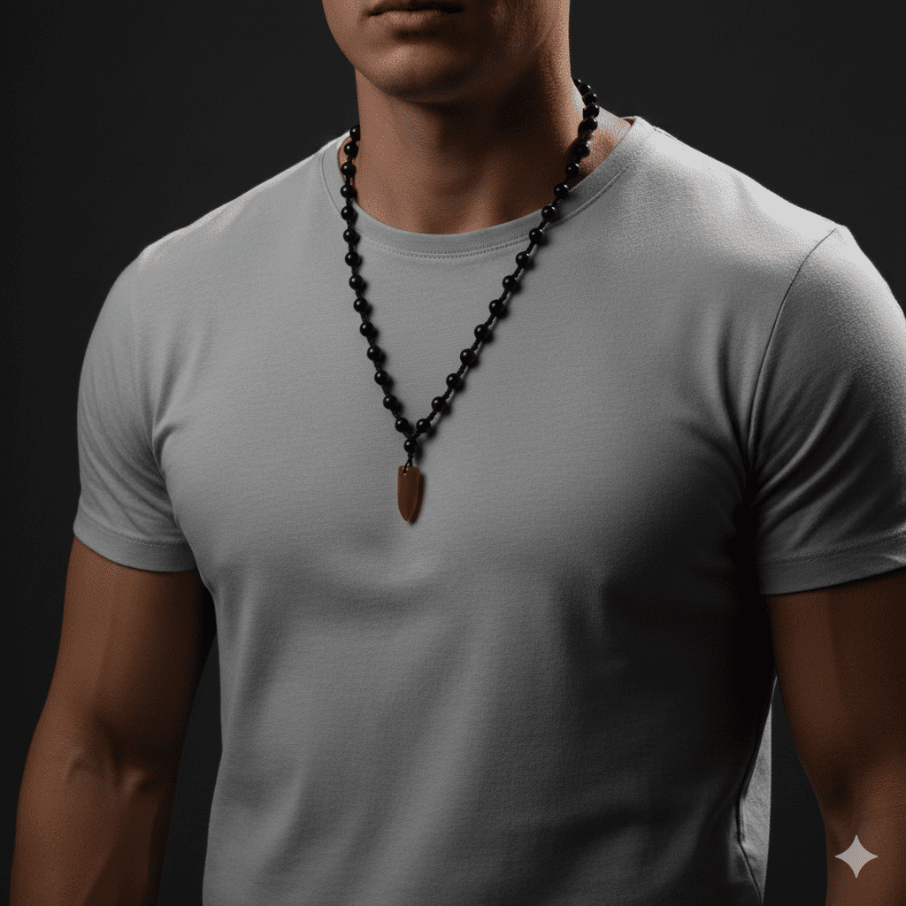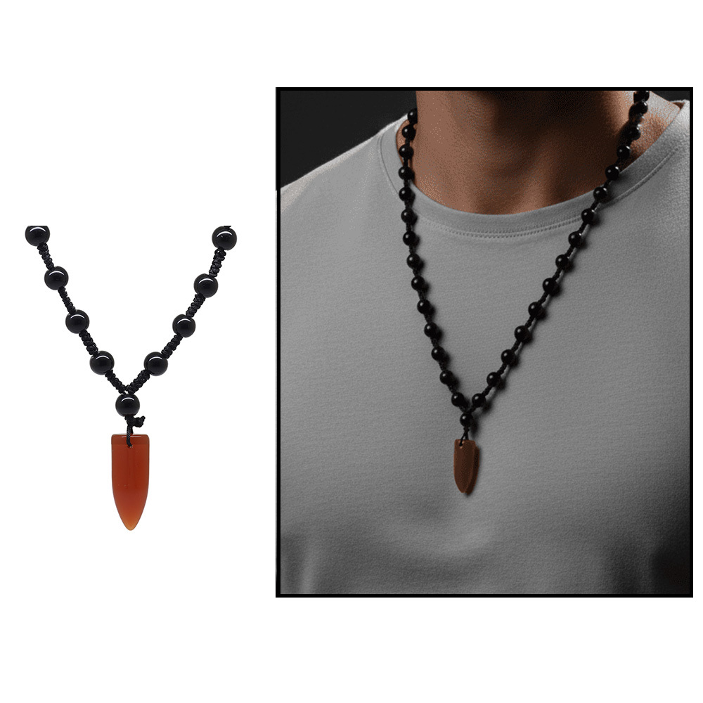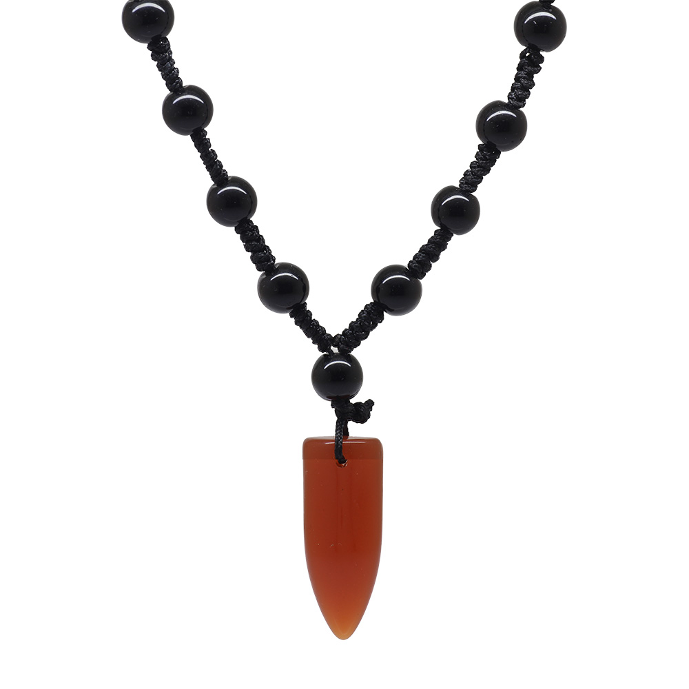 Makrome Örgülü Kırmızı Siyah Ceyt Doğaltaş Erkek Kolye - 1
