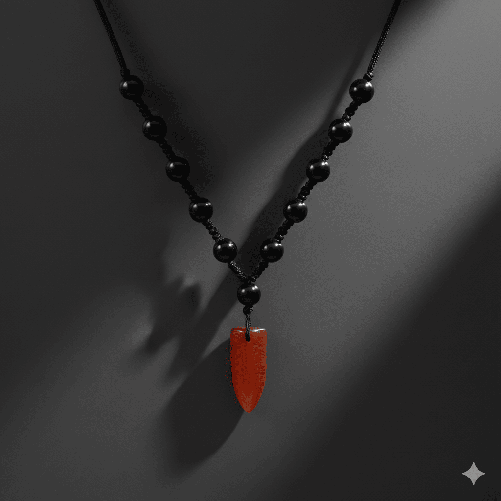 Makrome Örgülü Kırmızı Siyah Ceyt Doğaltaş Erkek Kolye