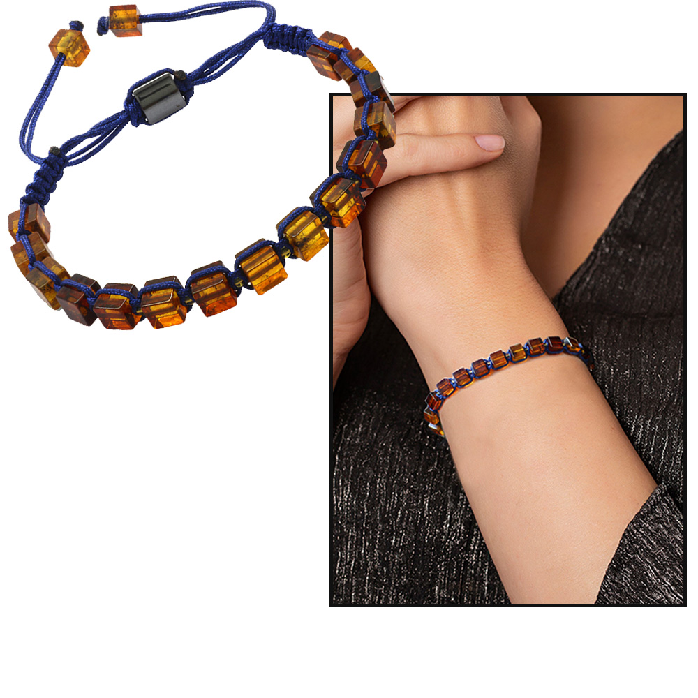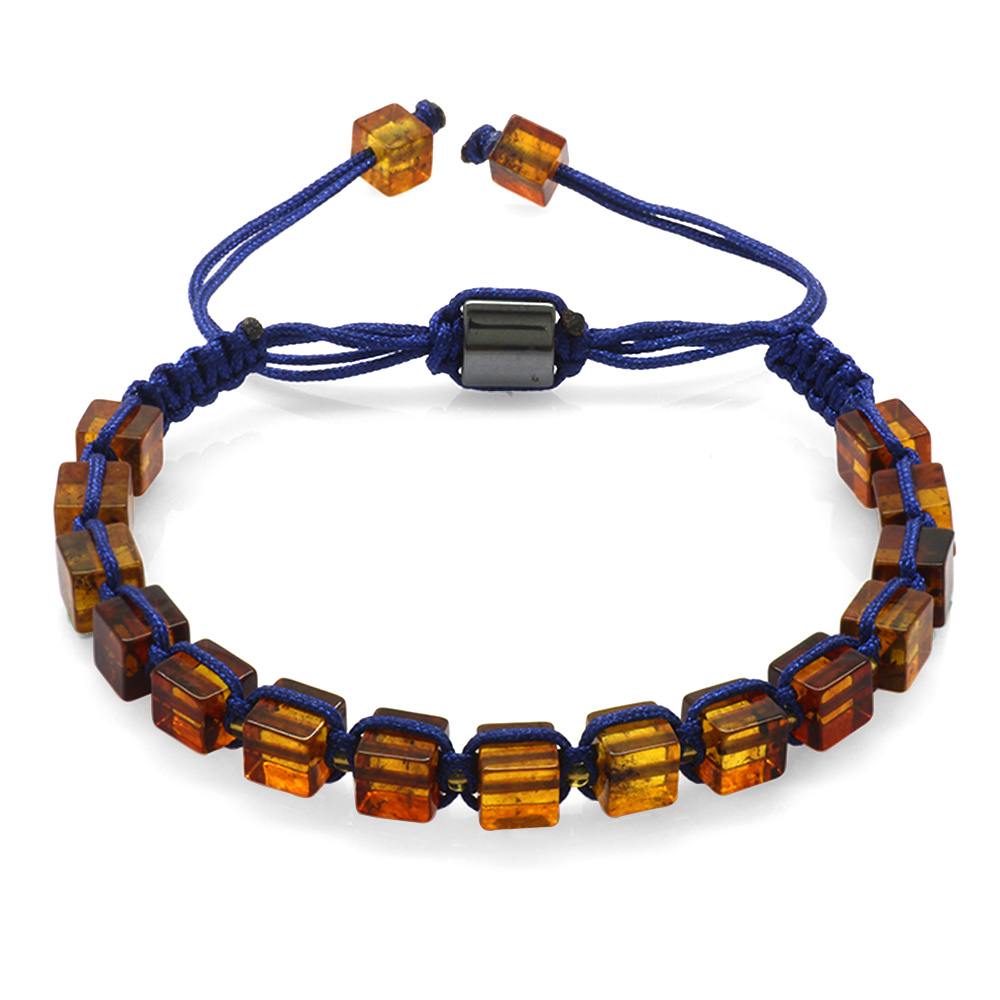 Makrome Örgülü Küp Kesim Bal Rengi Doğal Damla Kehribar Kadın Bileklik - 1