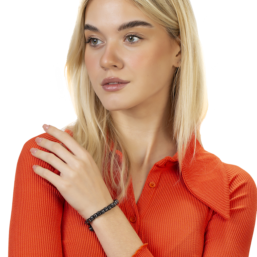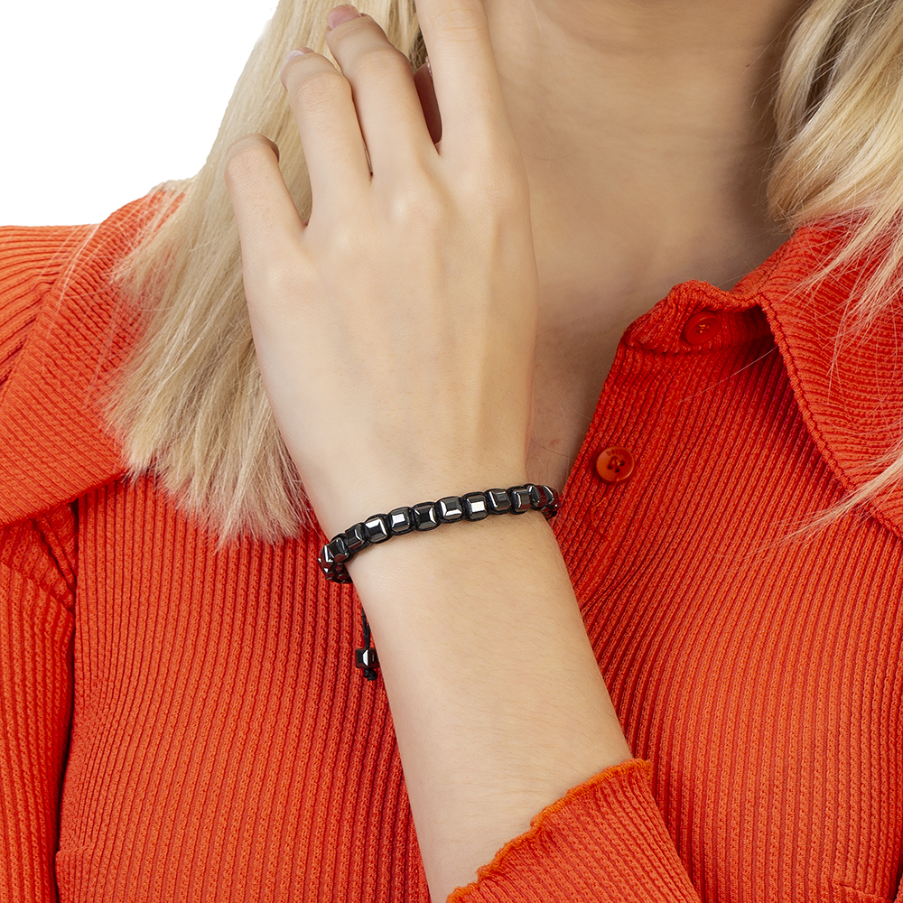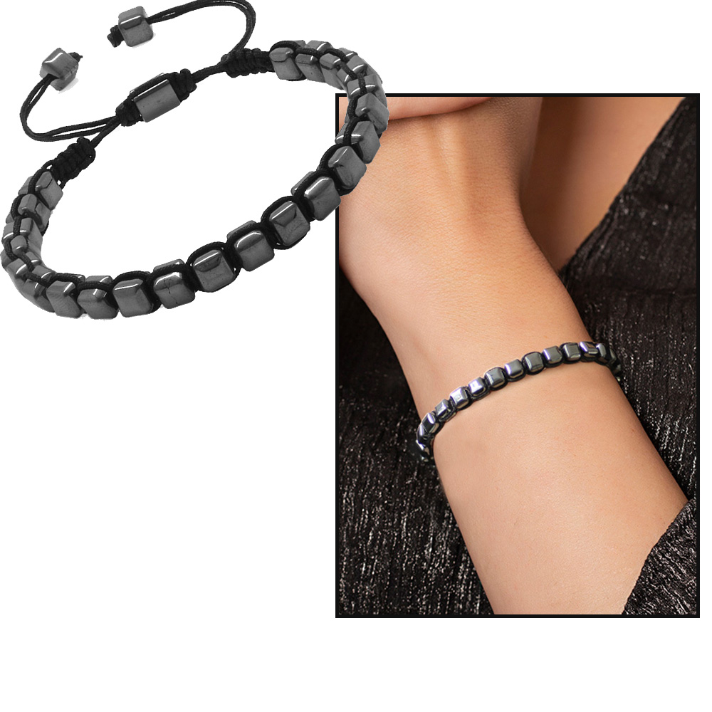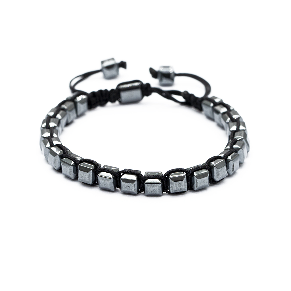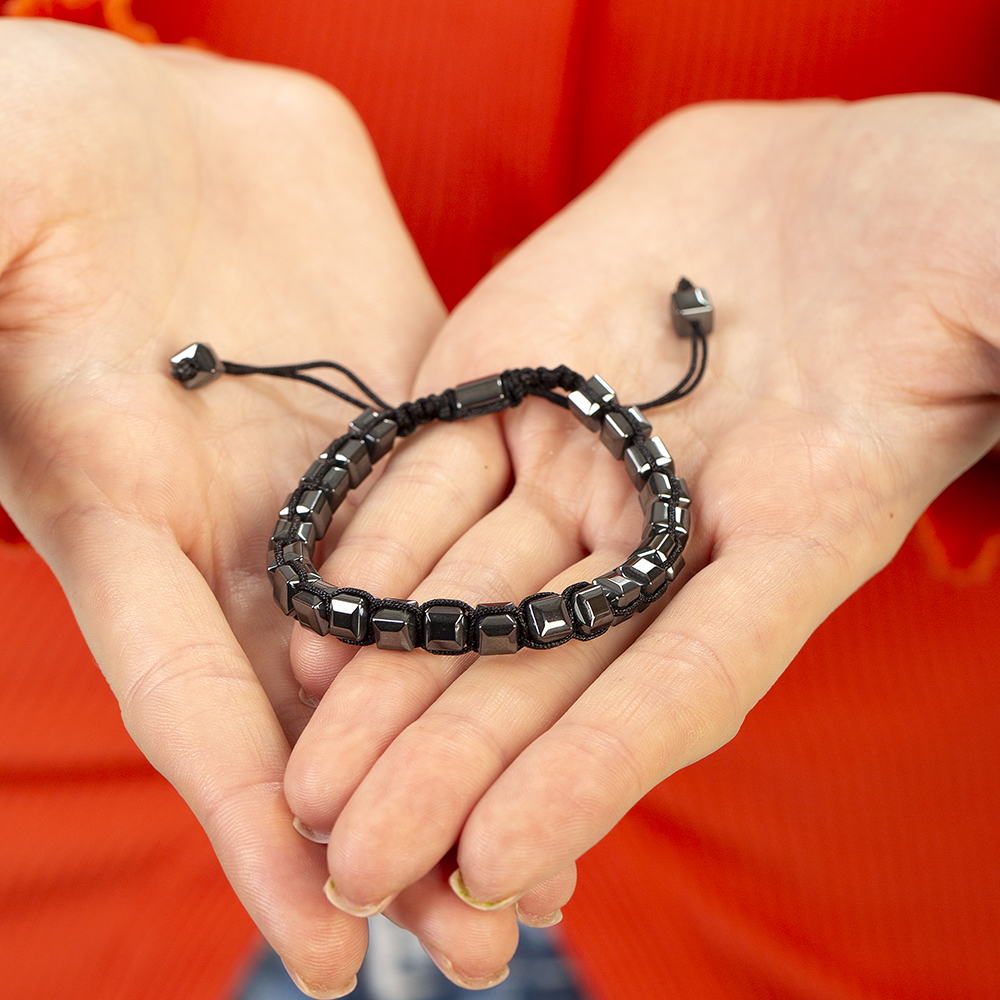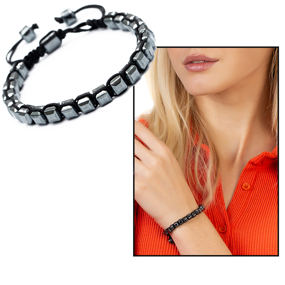 Makrome Örgülü Küp Kesim Hematit Doğaltaş Kadın Bileklik