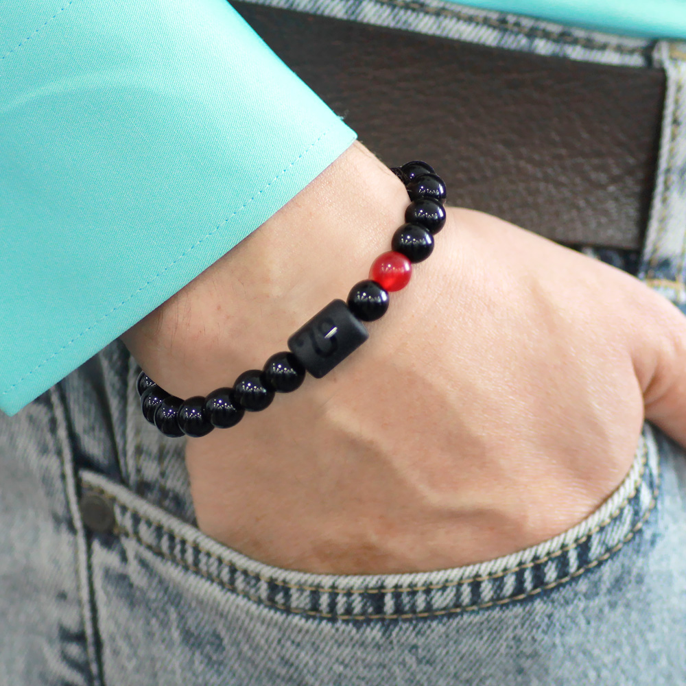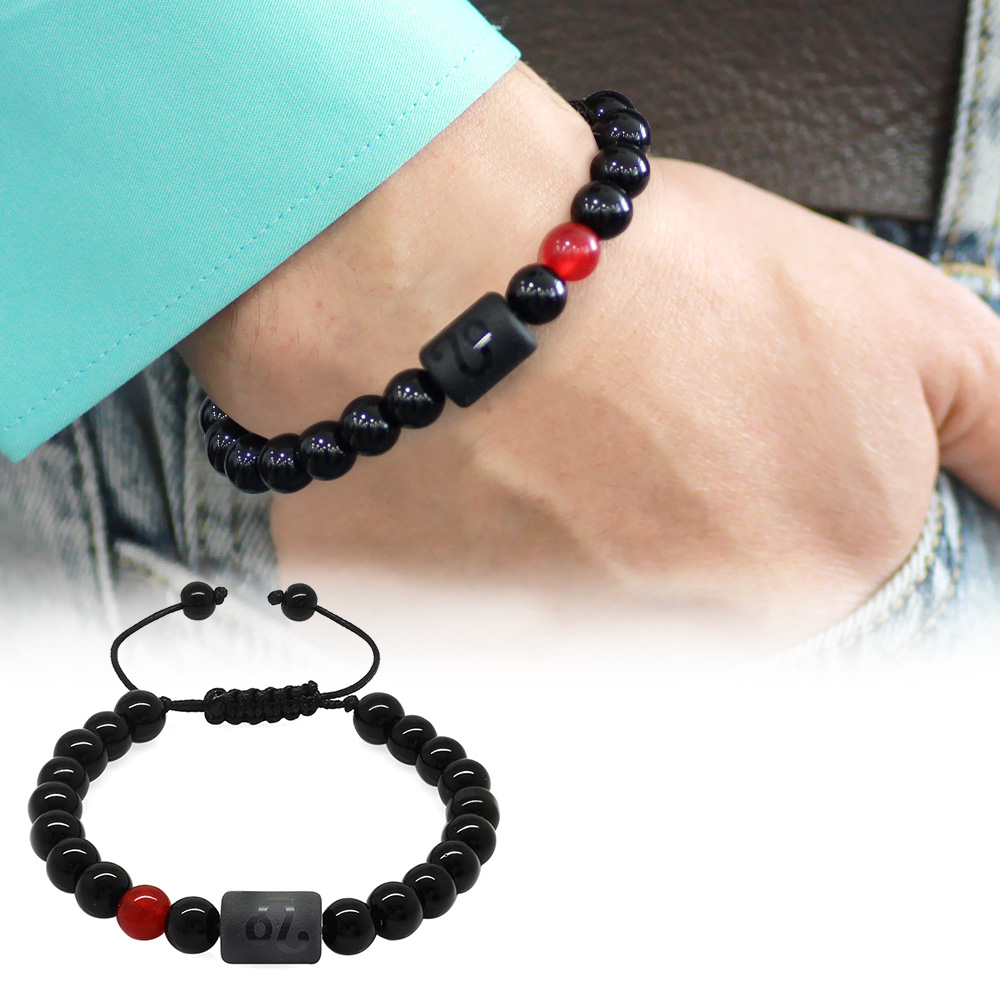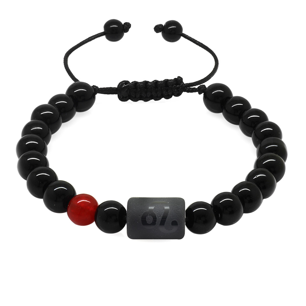Makrome Örgülü Küre Kesim Akik ve Oniks Taşlı Aslan Burcu Doğaltaş Erkek Bileklik - 1
