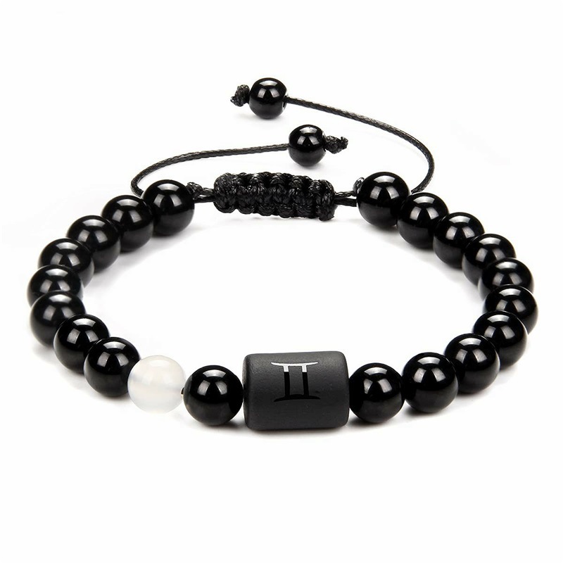 Makrome Örgülü Küre Kesim Aytaşı ve Oniks Taşlı İkizler Burcu Doğaltaş Kadın Bileklik