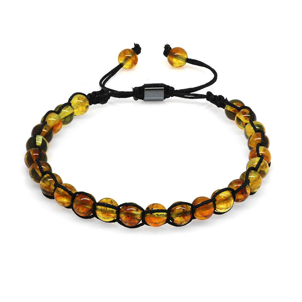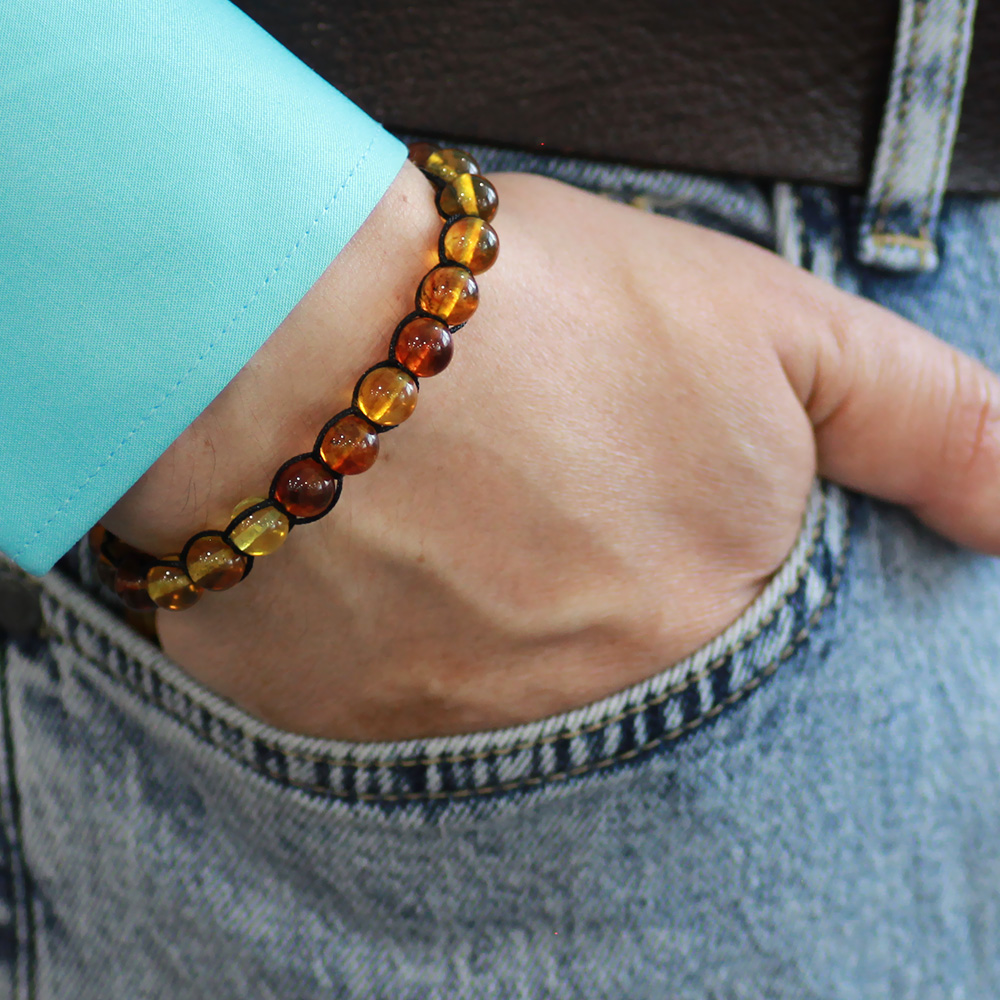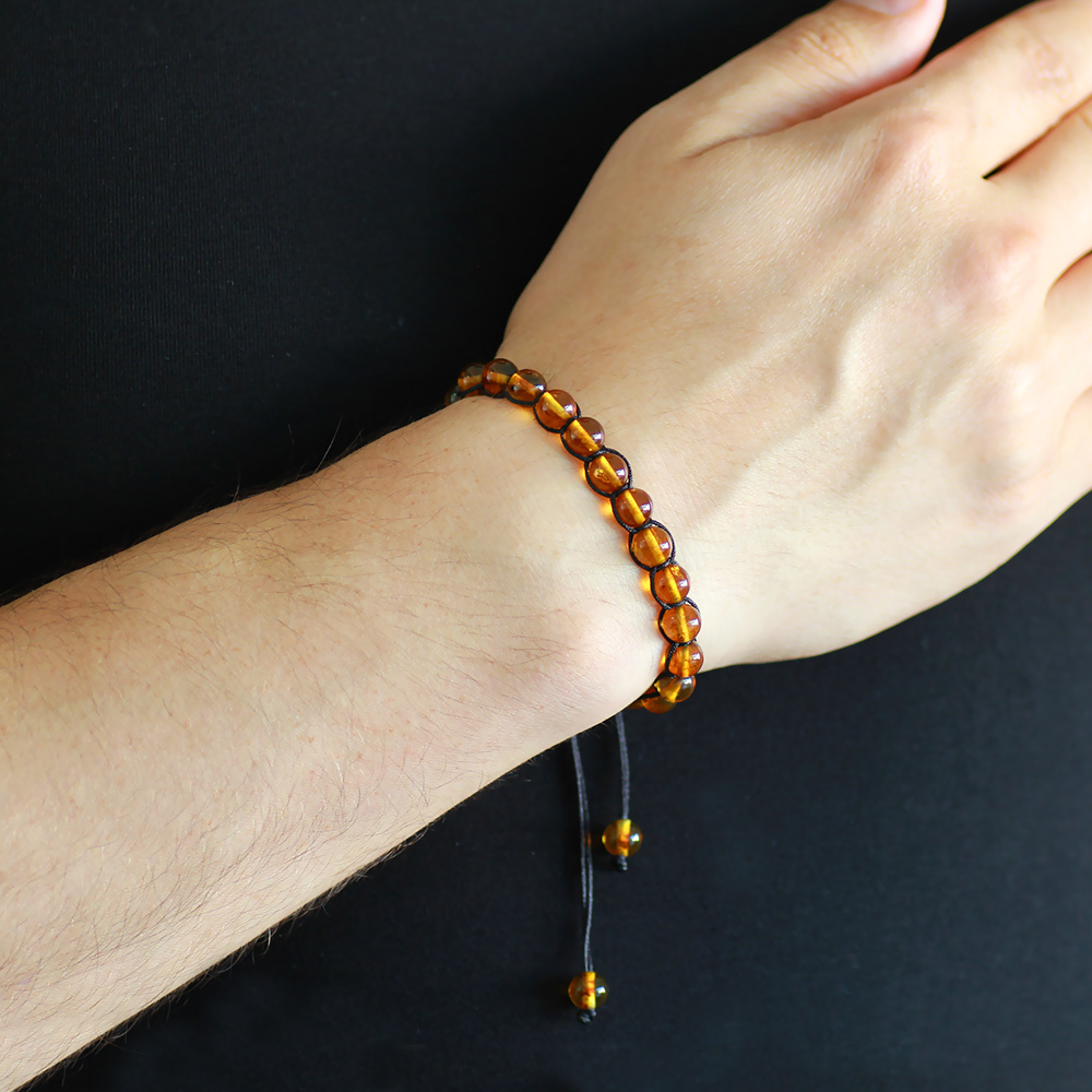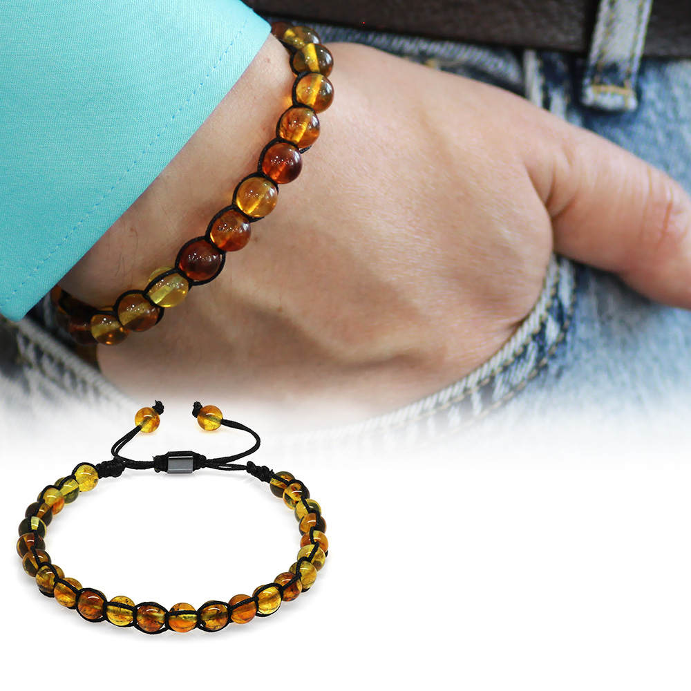 Makrome Örgülü Küre Kesim Bal Rengi Doğal Damla Kehribar Erkek Bileklik - 1
