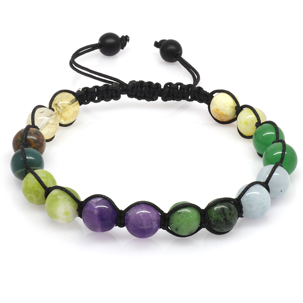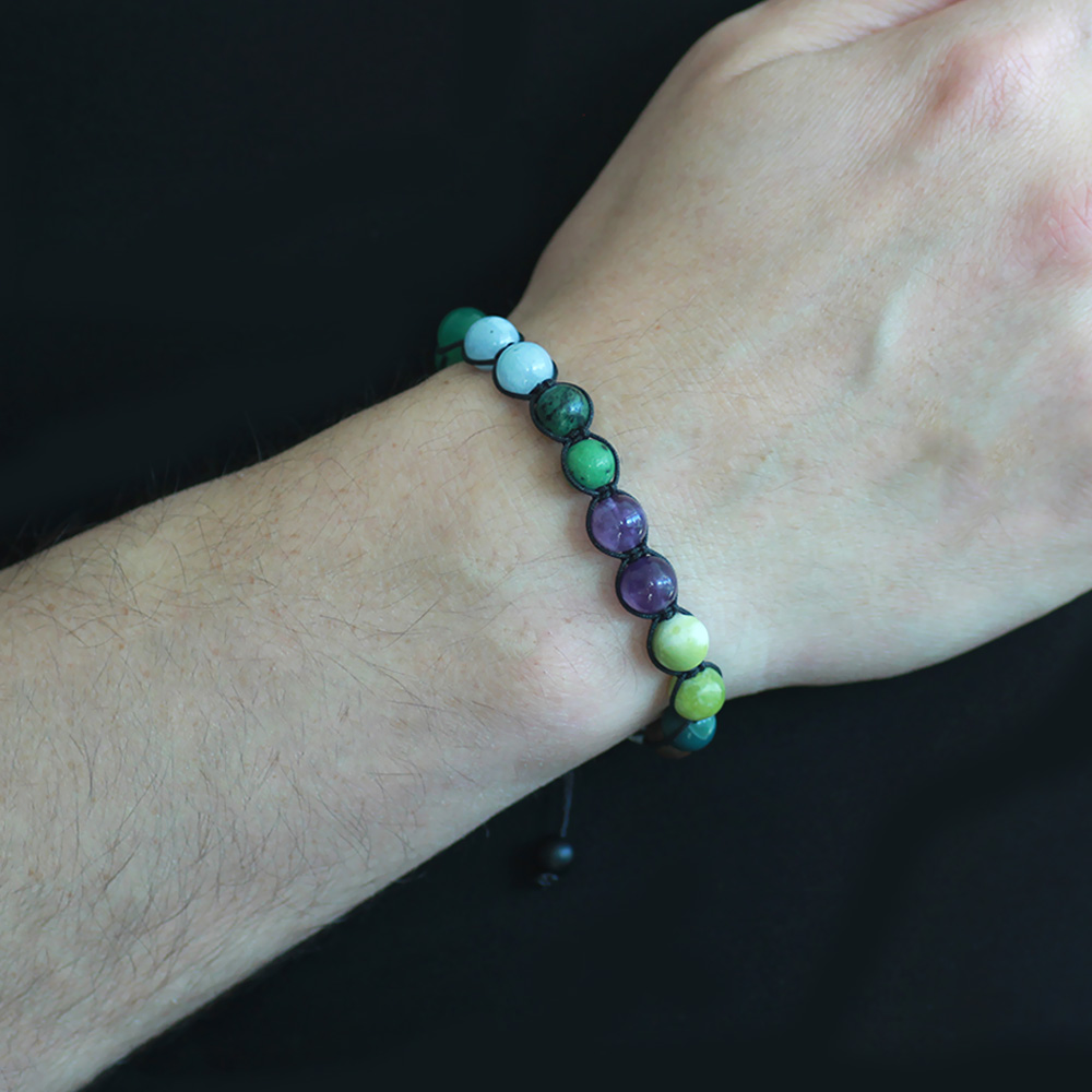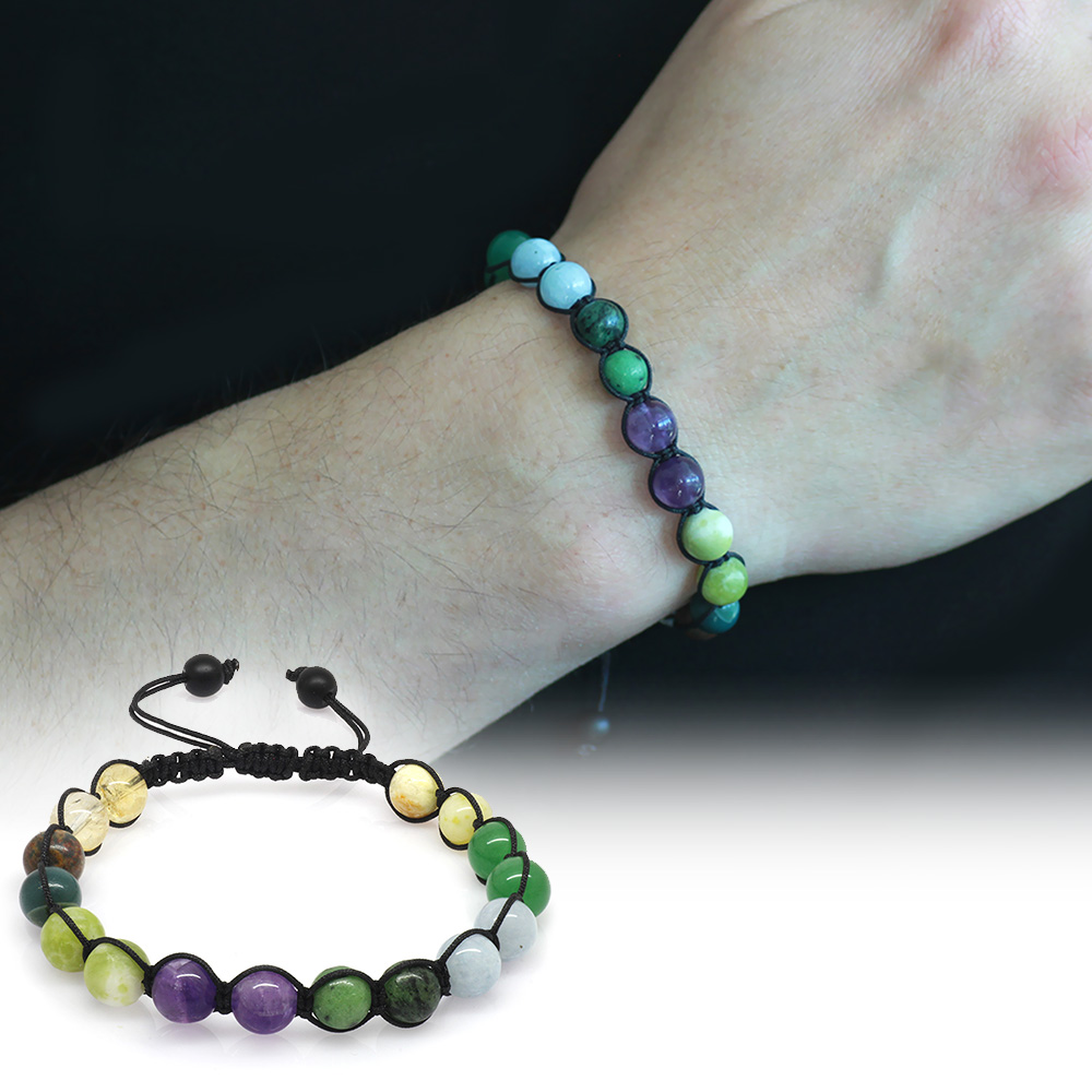 Makrome Örgülü Küre Kesim Çoklu Doğaltaş Kombinli Erkek Şifa Bilekliği