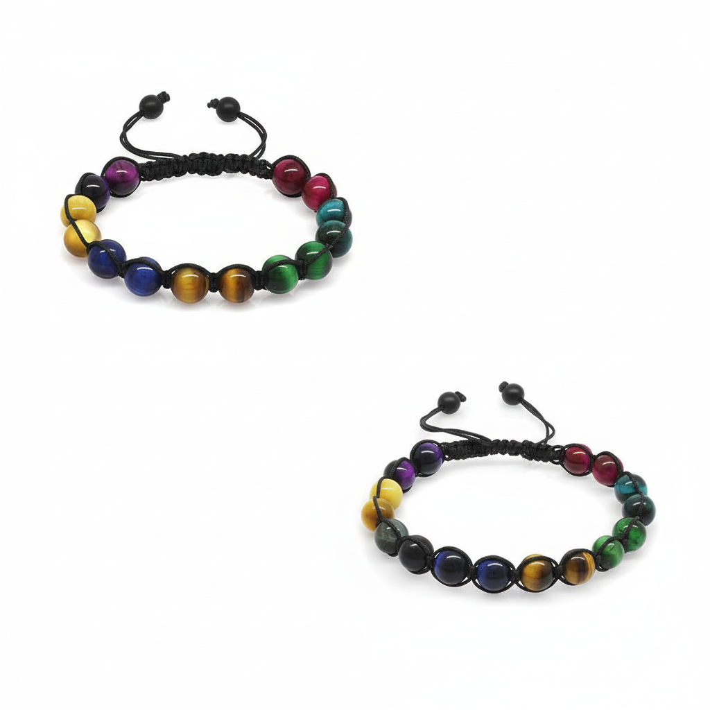 Makrome Örgülü Küre Kesim Çoklu Kaplan Gözü Doğaltaş Kombinli Kadın Erkek Enerji Bilekliği 2 li Set