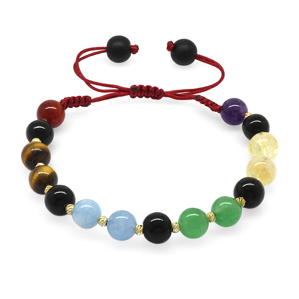 Makrome Örgülü Küre Kesim Dorika Top Süslemeli Çoklu Doğaltaş Kombinli Kadın Başarı Bilekliği