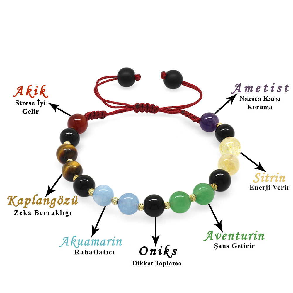 Başarı çakrası takılarımız, binlerce yıldır kullanılan ve şifa özellikleriyle bilinen 7 farklı doğal taşın bir araya gelmesiyle oluşturulmuştur. Bu özel taşların enerjileri, vücudunuzdaki enerji akışını düzenleyerek, zihninizi berraklaştırır, ruhunuzu besler ve bedeninizi güçlendirir. Böylece, hedeflerinize daha kolay ulaşabilir, hayallerinizi gerçekleştirebilir ve hayatınızda başarıyı yakalayabilirsiniz. Akik, amazonit, ametist, hematit, kaplan gözü, kuvars ve oniks gibi değerli taşların birleşimiyle oluşturulan bu özel takılar, kişisel gücünüzü ortaya çıkarmanıza, hedeflerinize ulaşmanıza ve hayallerinizi gerçekleştirmenize yardımcı olur.