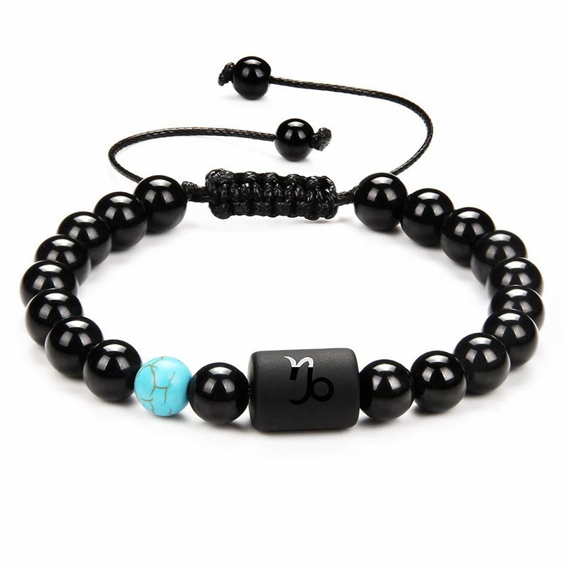 Makrome Örgülü Küre Kesim Firuze ve Oniks Taşlı Oğlak Burcu Doğaltaş Kadın Bileklik - 1