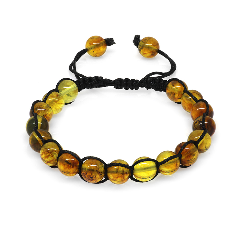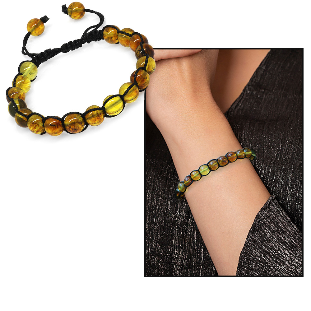 Makrome Örgülü Küre Kesim Fosilli Doğal Damla Kehribar Kadın Bileklik - 1