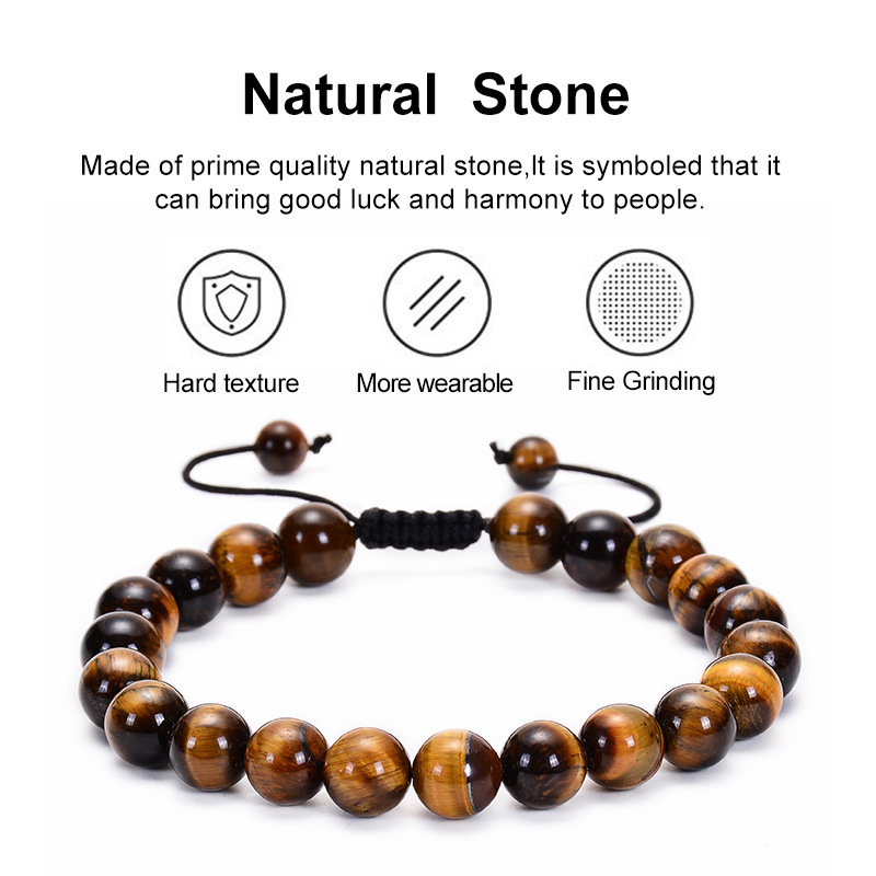Makrome Örgülü Küre Kesim Kaplan Gözü Doğaltaş Erkek Bileklik - 2