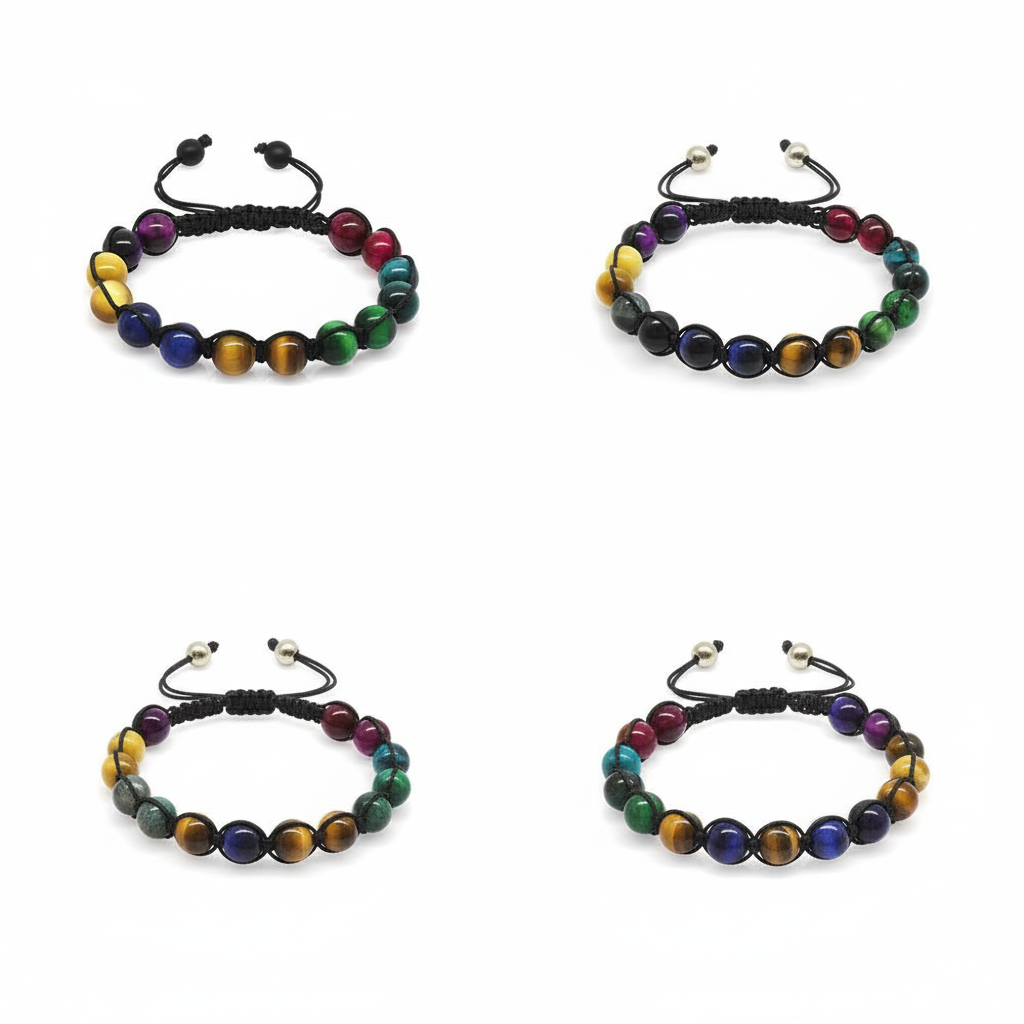 Makrome Örgülü Küre Kesim Kaplan Gözü Doğaltaş Bileşim Aile Enerji Bilekliği 4 lü Set
