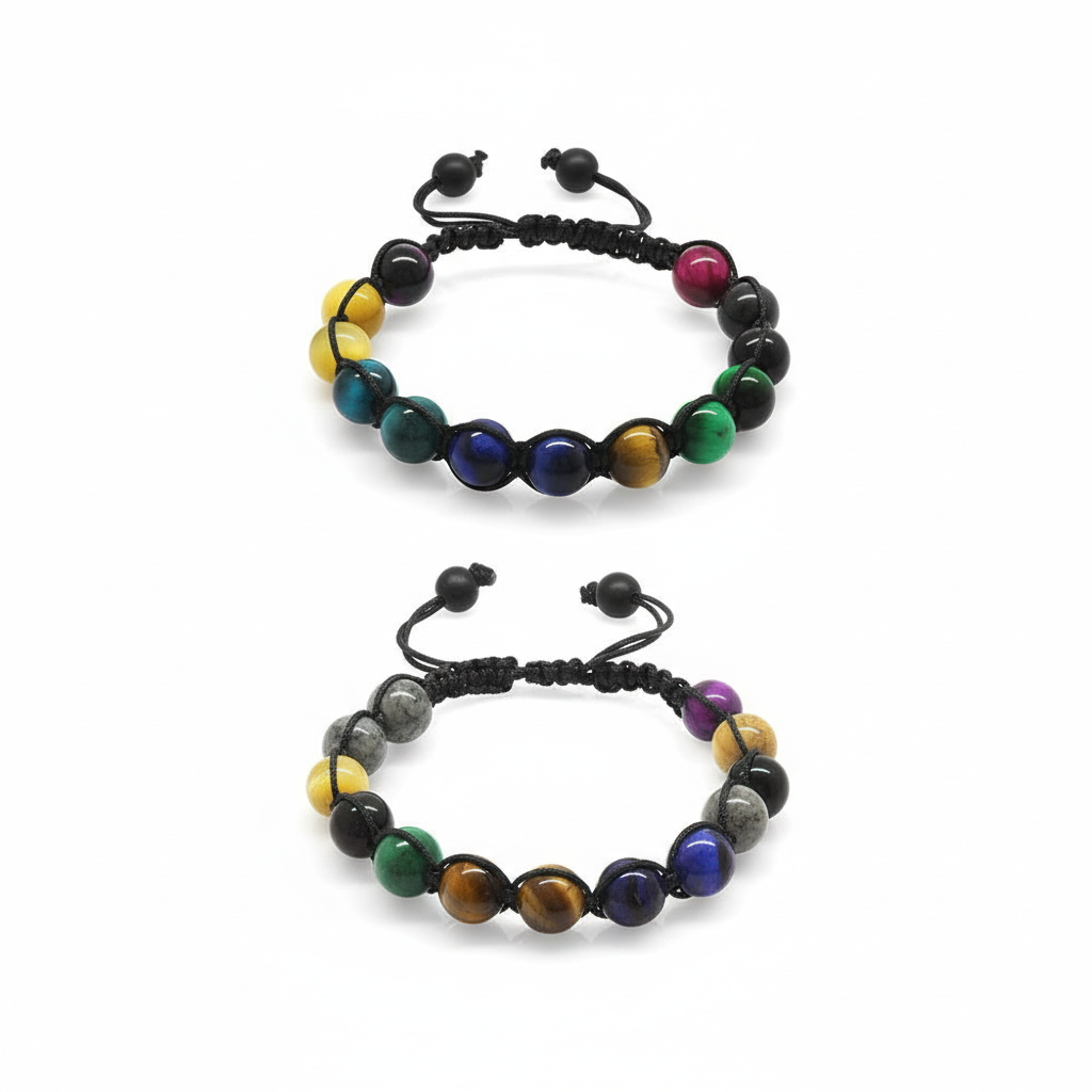 Makrome Örgülü Küre Kesim Kaplan Gözü Doğaltaş Kombinli Çocuk Genç Enerji Bilekliği 2 li Set