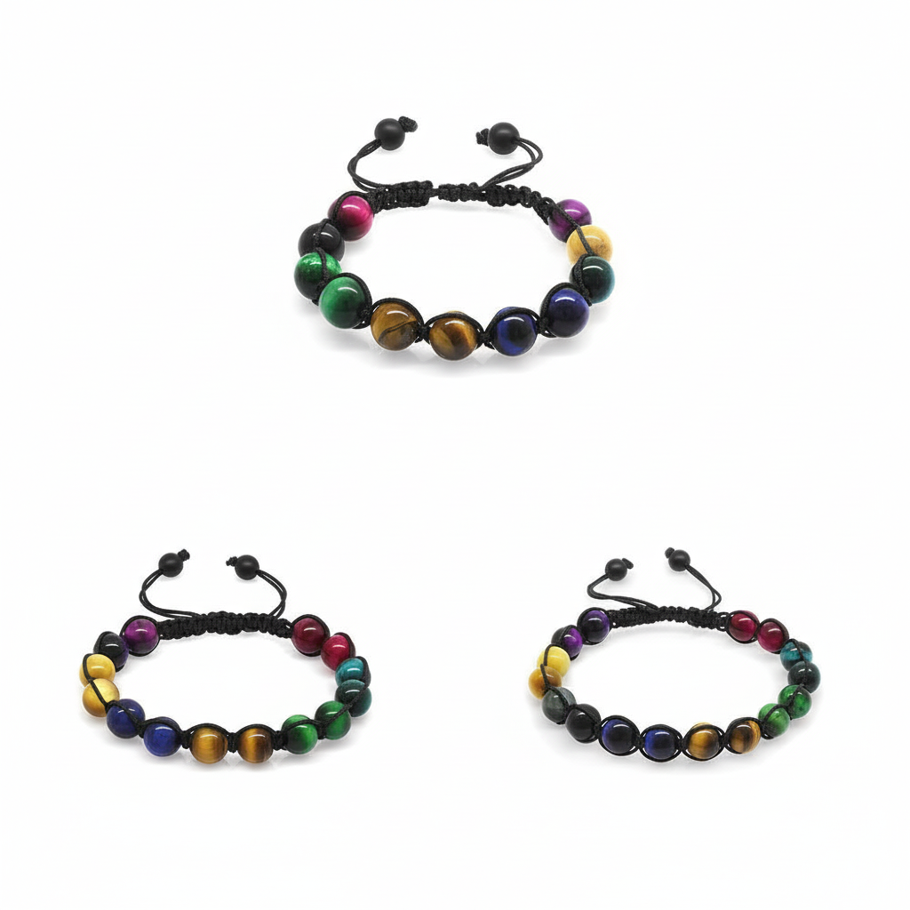 Makrome Örgülü Küre Kesim Kaplan Gözü Doğaltaş Kombinli Kadın Erkek Çocuk Enerji Bilekliği 3 lü Set