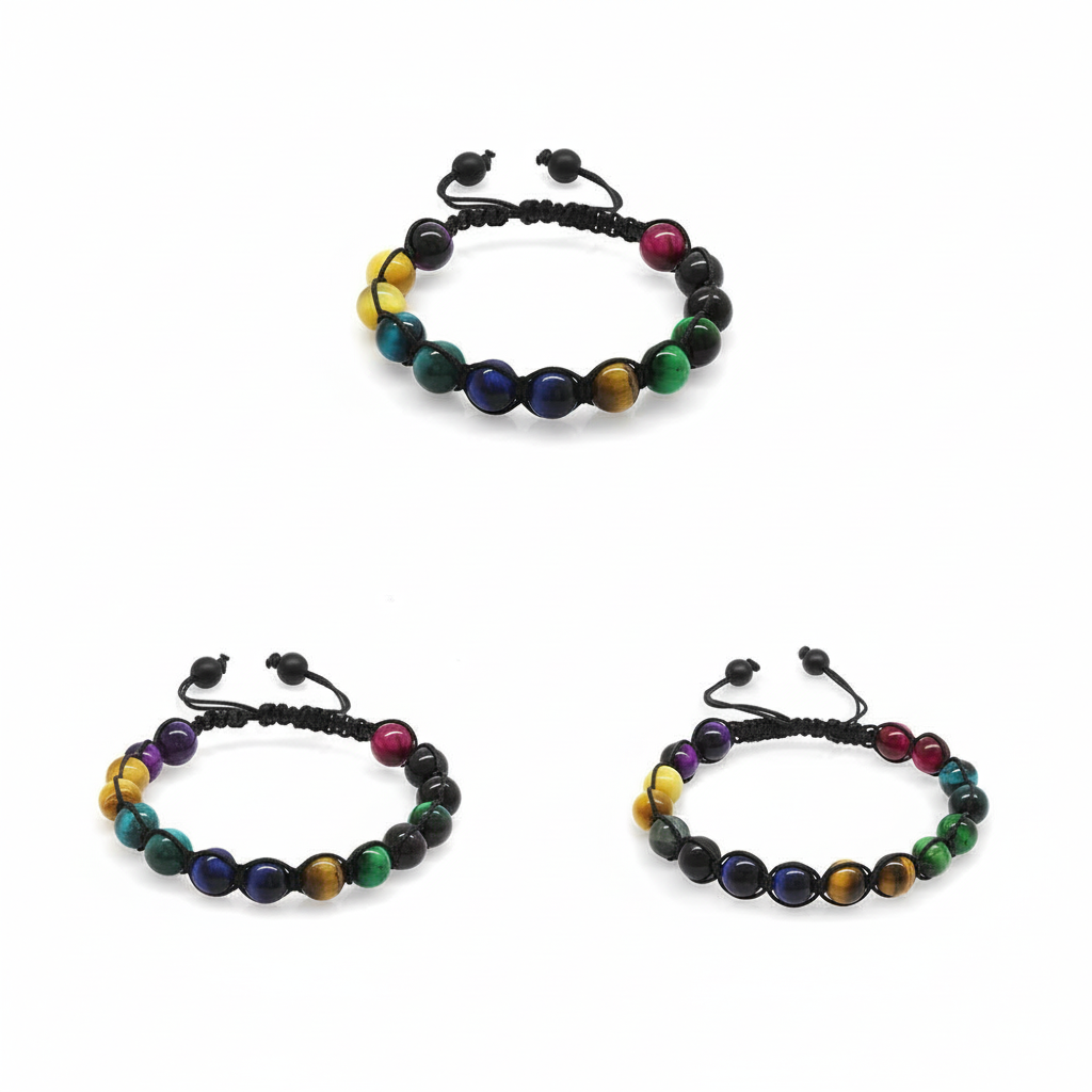 Makrome Örgülü Küre Kesim Kaplan Gözü Doğaltaş Kombinli Kadın Erkek Genç Enerji Bilekliği 3 lü Set