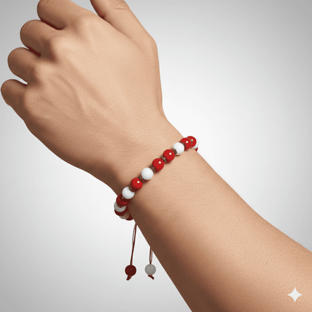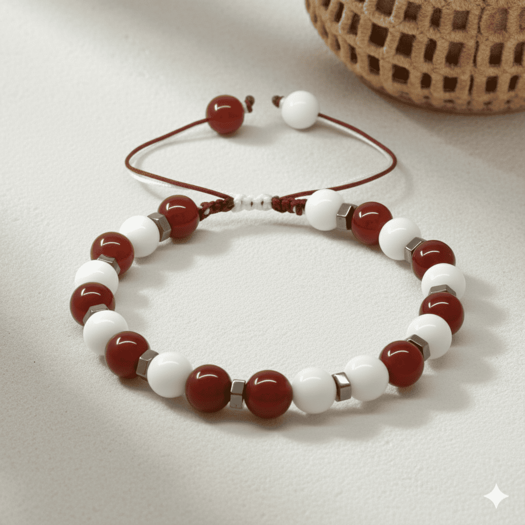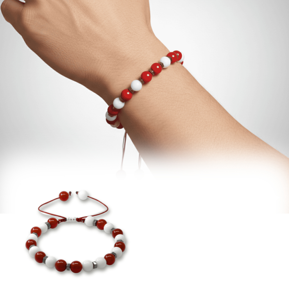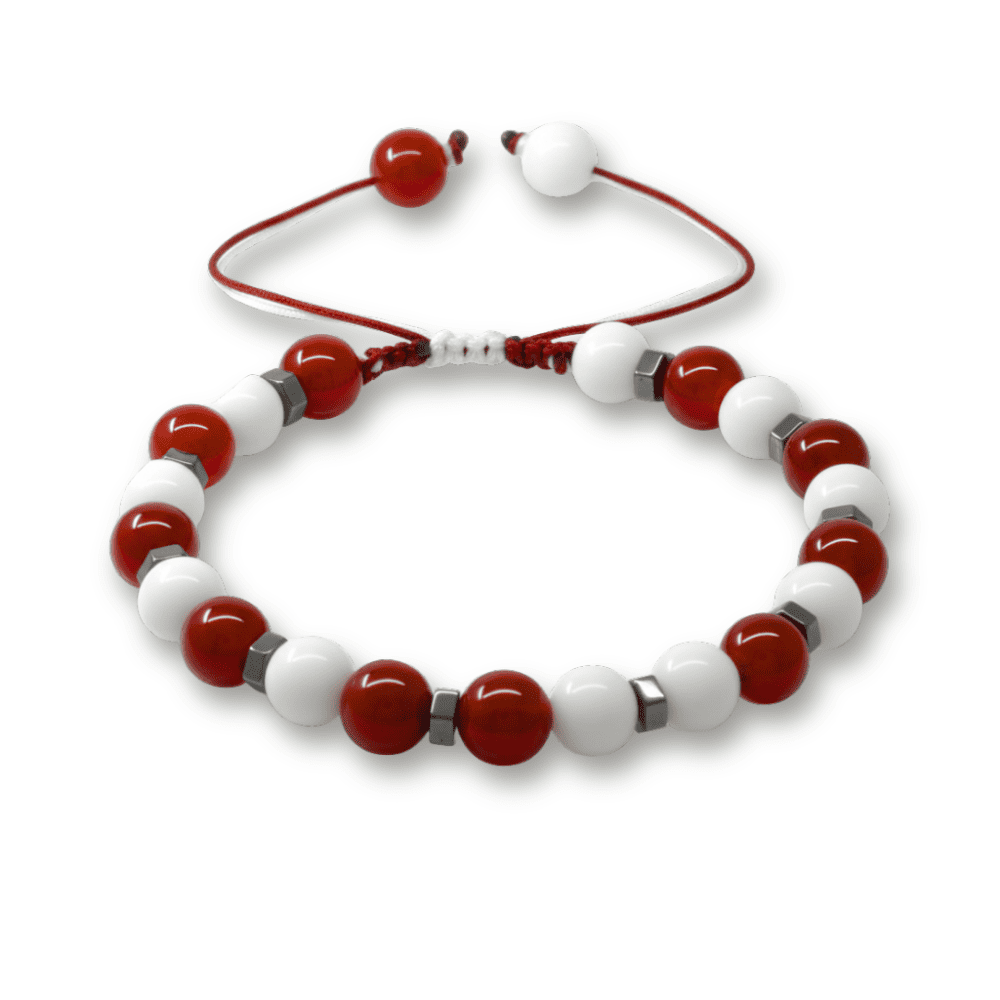 Makrome Örgülü Küre Kesim Kırmızı Beyaz Jade Akik Hematit Doğaltaş Erkek Taraftar Bileklik
