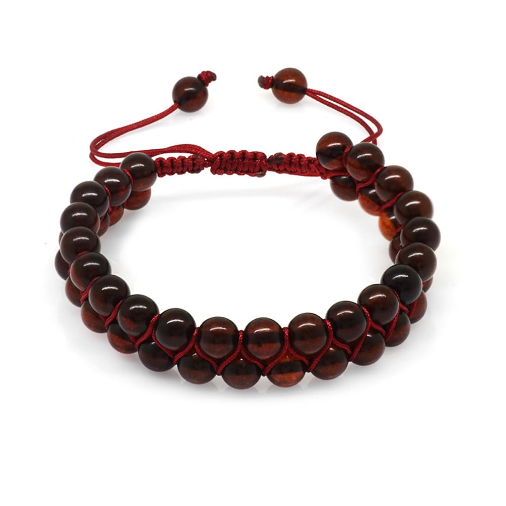 Çift Sıra Makrome Örgülü Küre Kesim Kırmızı Doğal Damla Kehribar Kadın Bileklik