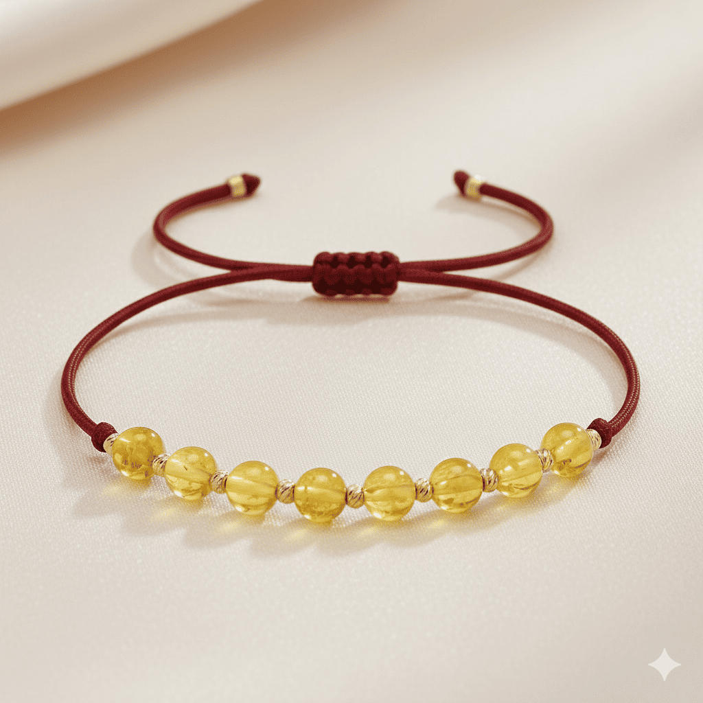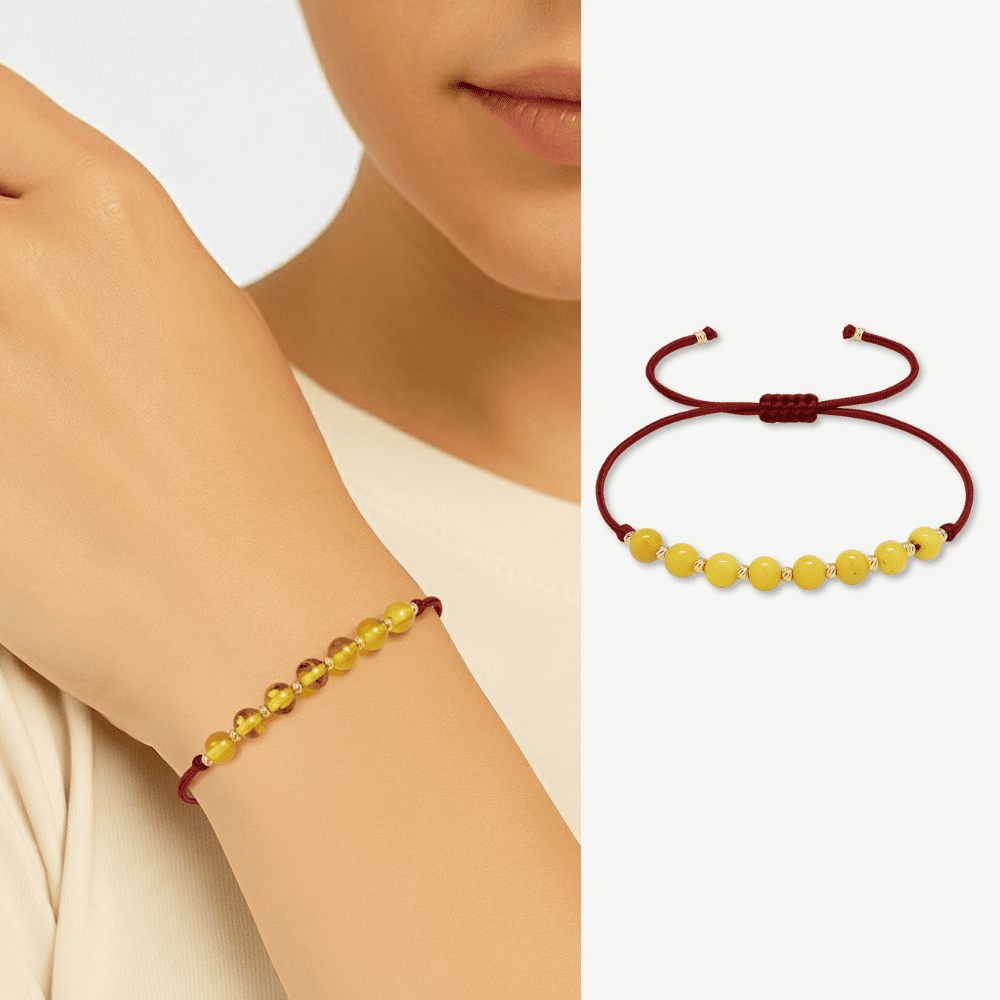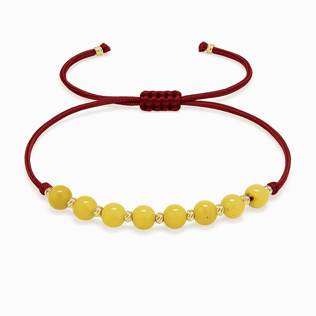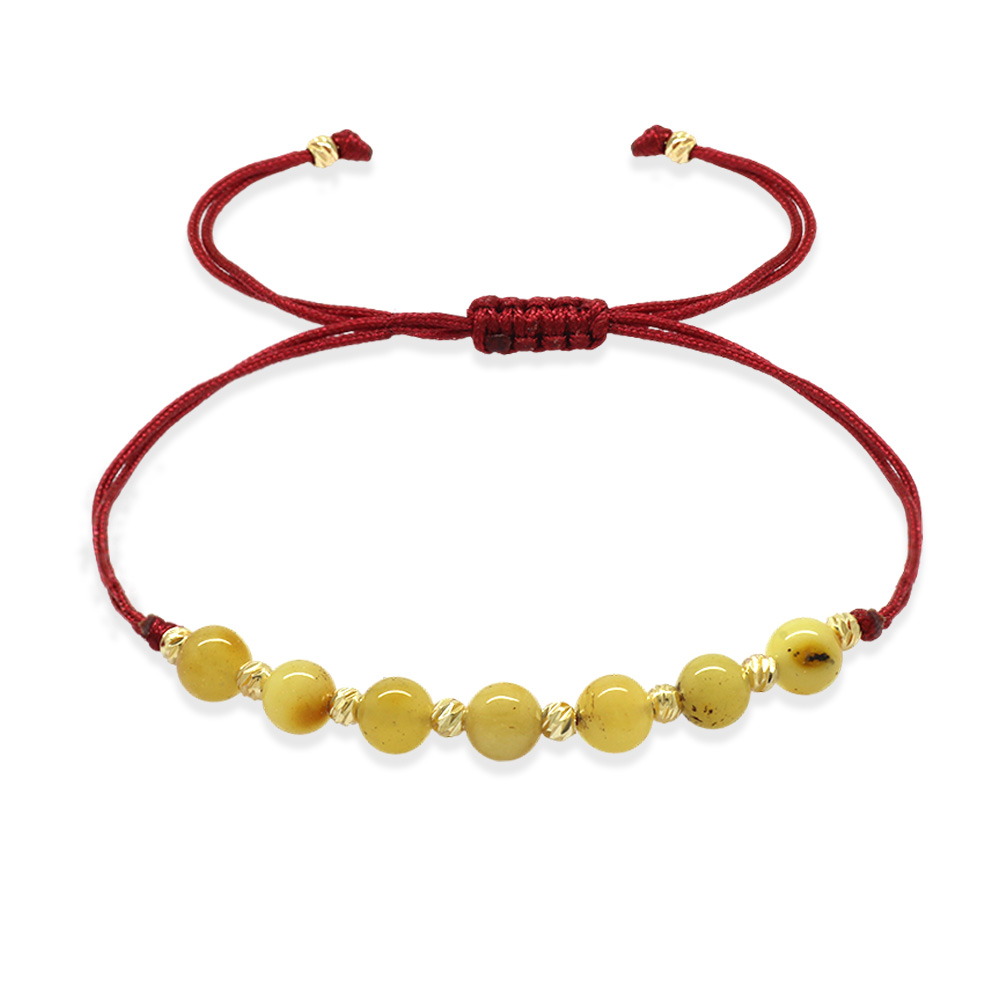 Makrome Örgülü Küre Kesim Kırmızı İp Dorika Top Sarı Beyaz Renk Doğal Damla Kehribar Kadın Bileklik