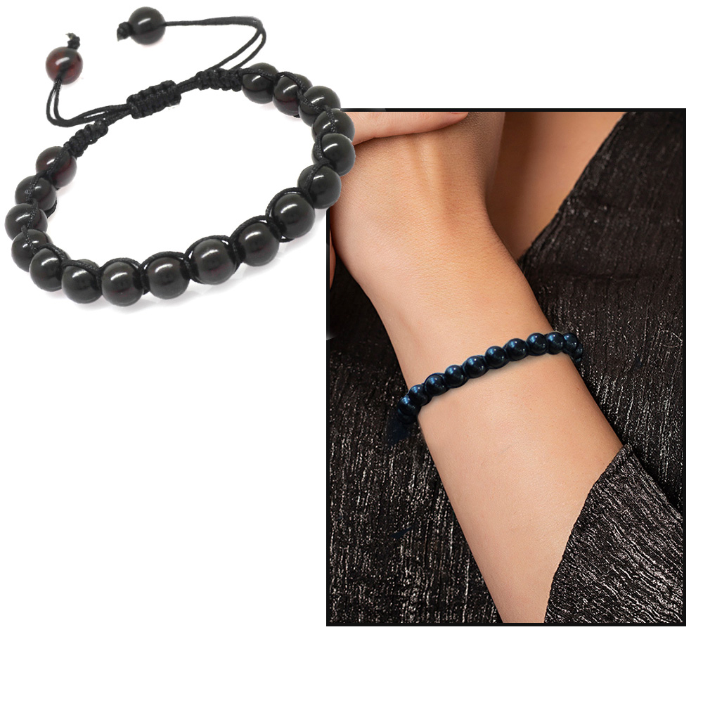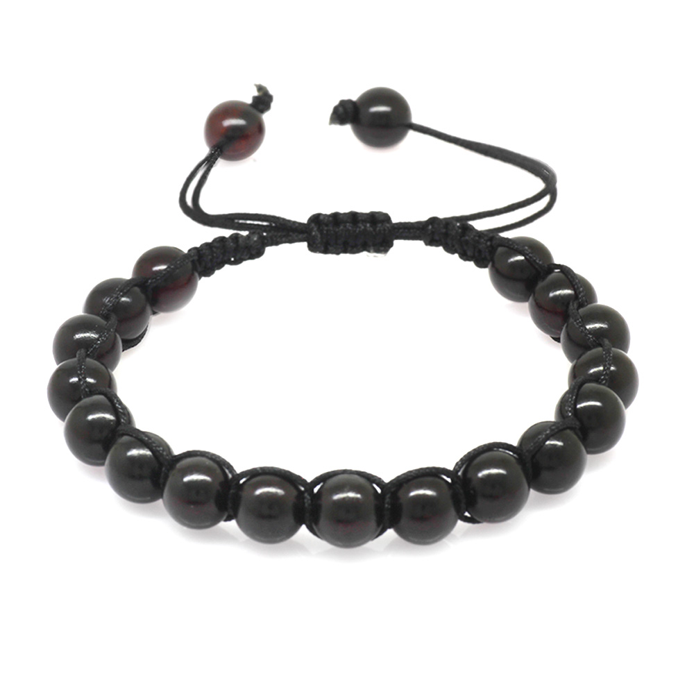 Makrome Örgülü Küre Kesim Koyu Kırmızı Doğal Damla Kehribar Kadın Bileklik