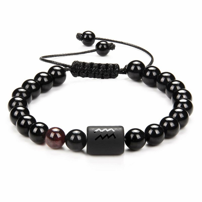 Makrome Örgülü Küre Kesim Lal ve Oniks Taşlı Kova Burcu Doğaltaş Erkek Bileklik - 1
