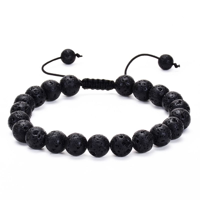 Makrome Örgülü Küre Kesim Lav Doğaltaş Kadın Bileklik