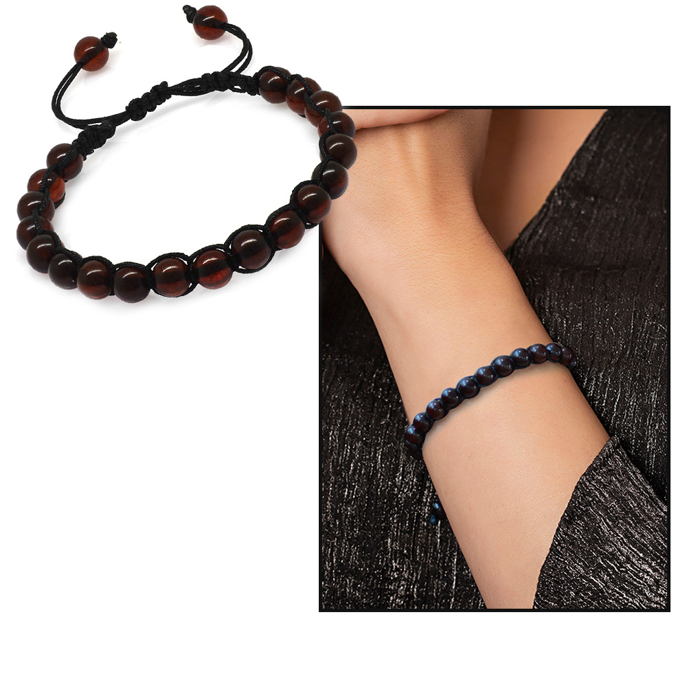Makrome Örgülü Küre Kesim Kırmızı Doğal Damla Kehribar Kadın Bileklik - 1