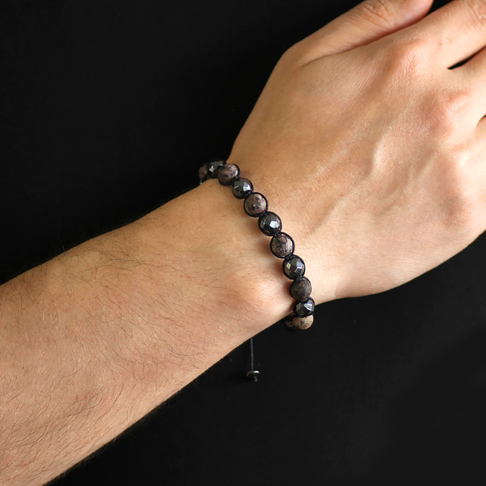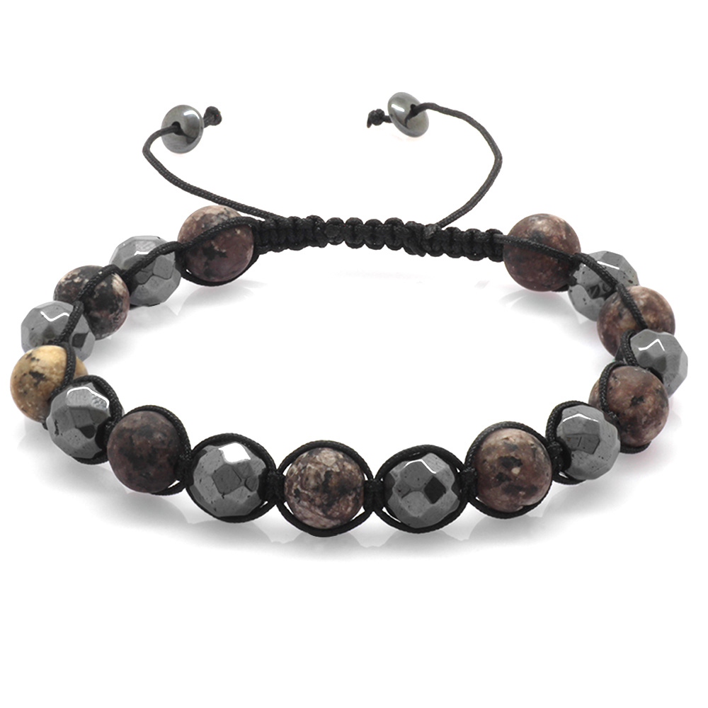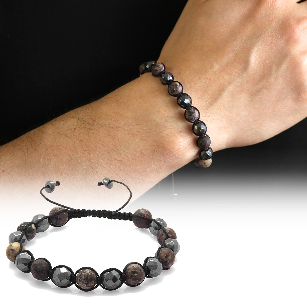 Makrome Örgülü Küre Kesim Mat Ceyt Fasetalı Hematit Kombinli Doğaltaş Bileklik