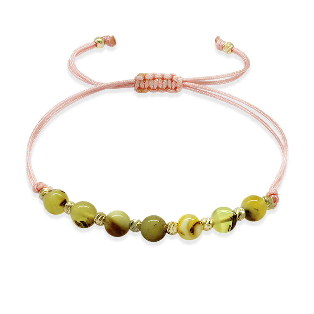 Makrome Örgülü Küre Kesim Dorika Top Süslemeli Sarı Beyaz Renk Doğal Damla Kehribar Kadın Bileklik