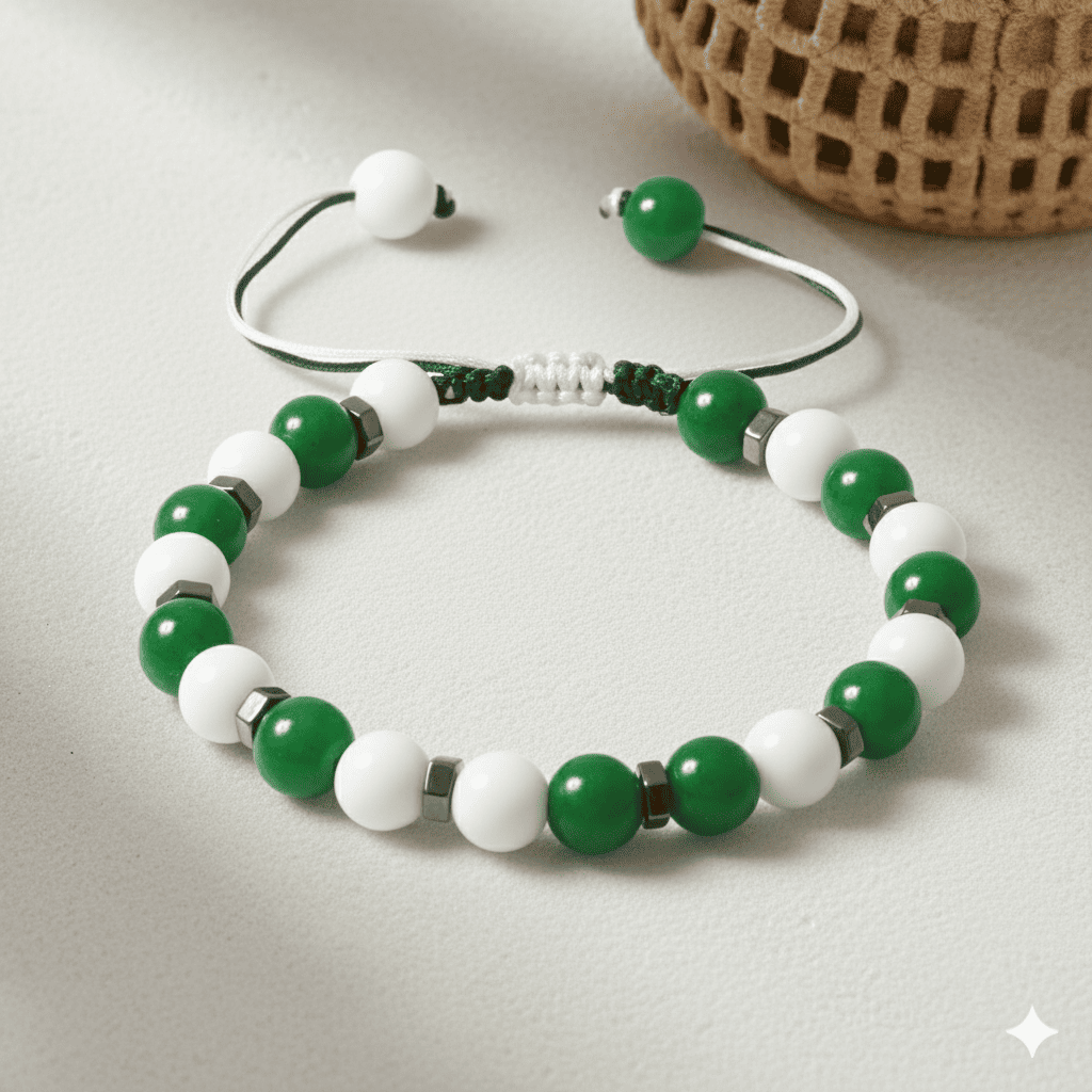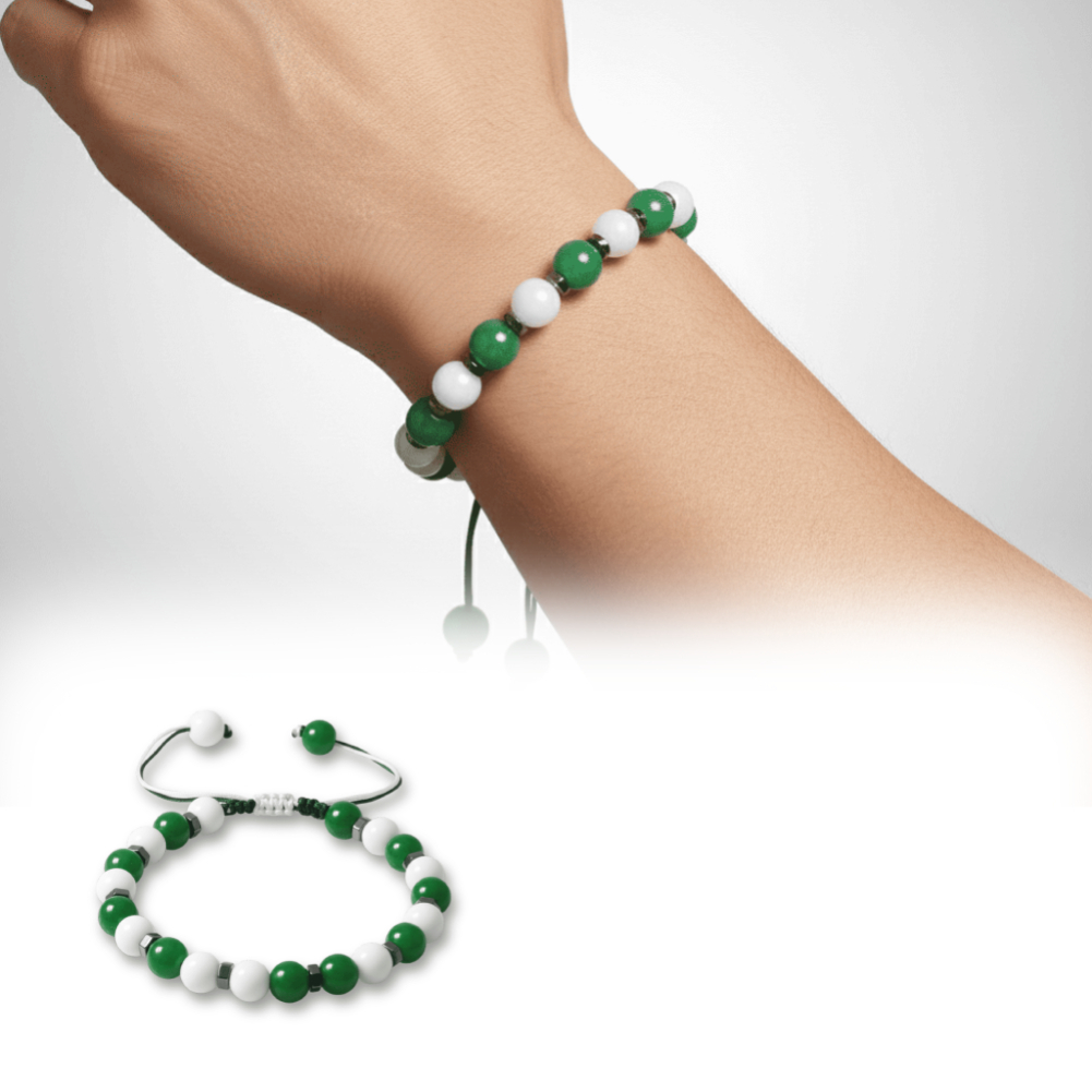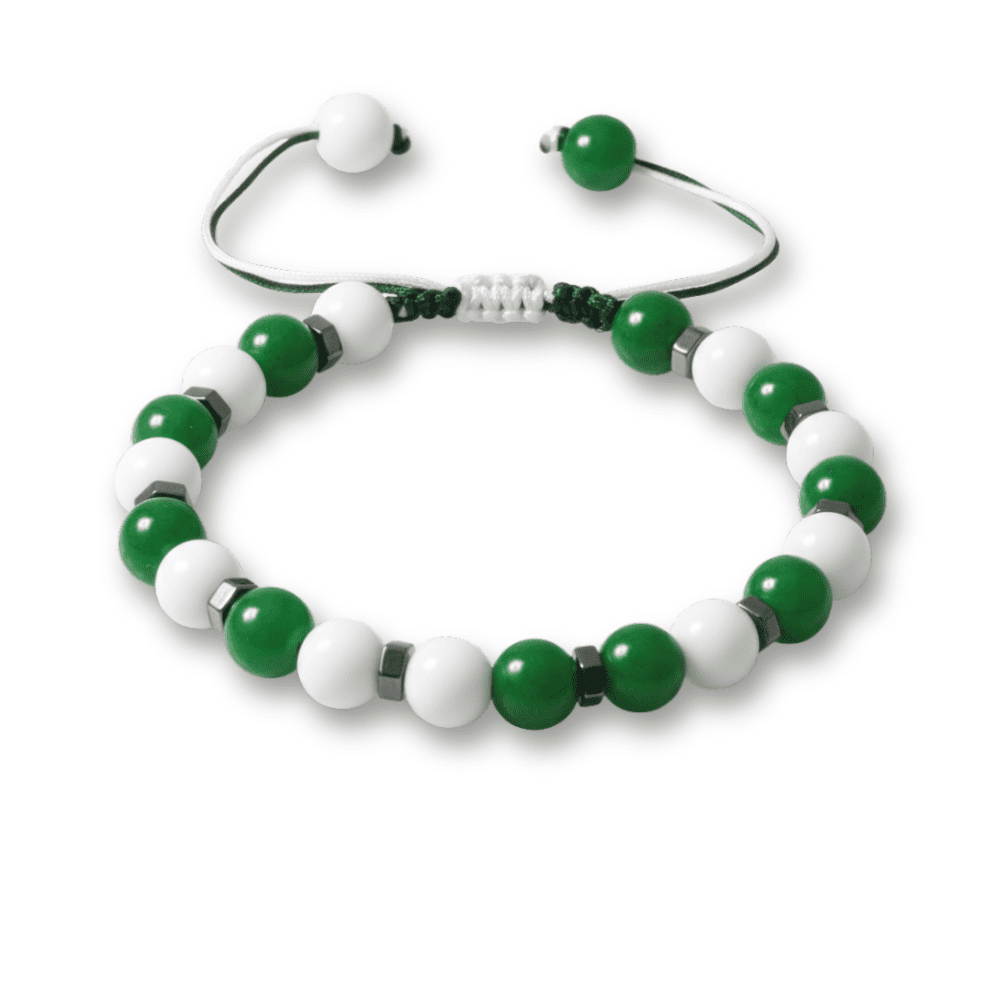 Makrome Örgülü Küre Kesim Yeşil Beyaz Jade Hematit Doğaltaş Erkek Taraftar Bileklik