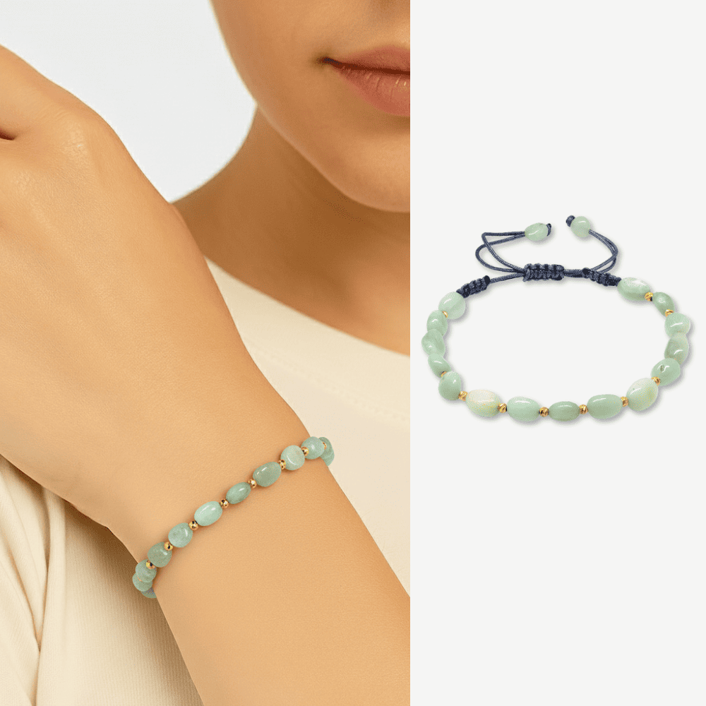 Makrome Örgülü Naturel Kesim Amazonit Doğaltaş Kadın Bileklik - 1
