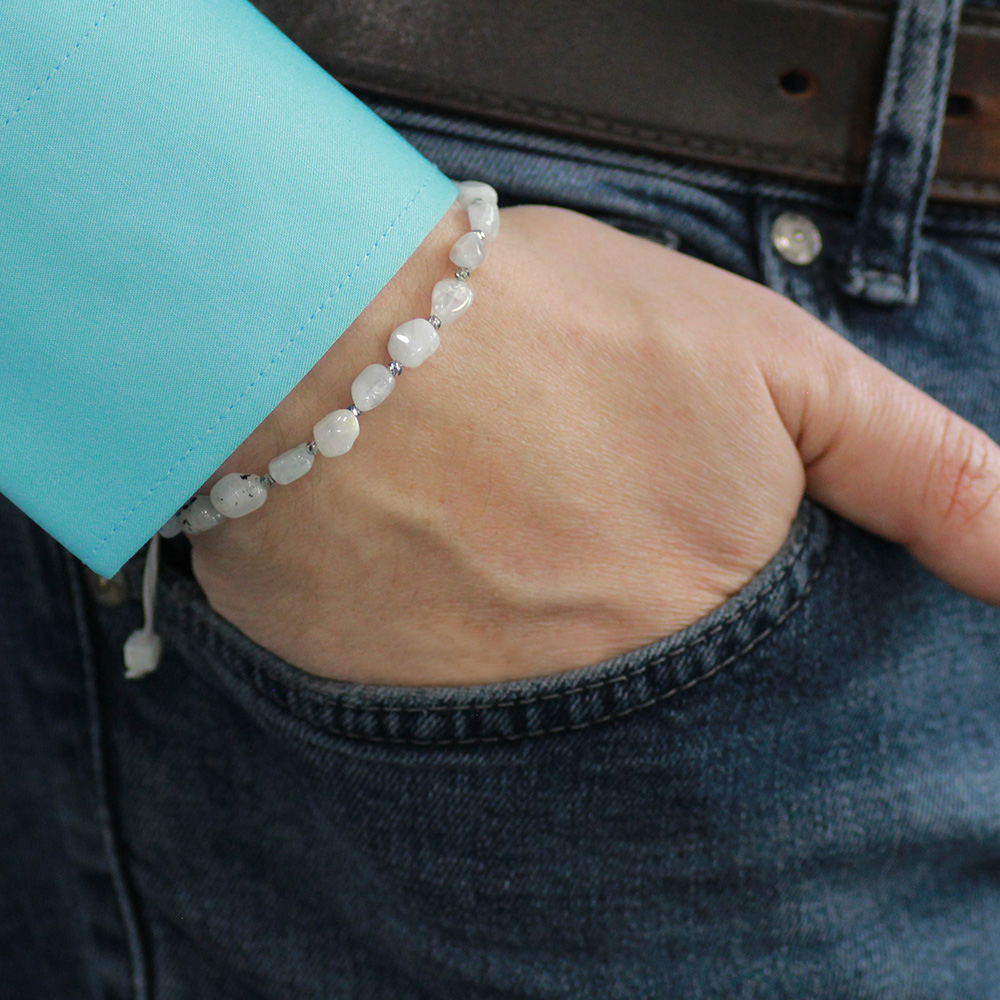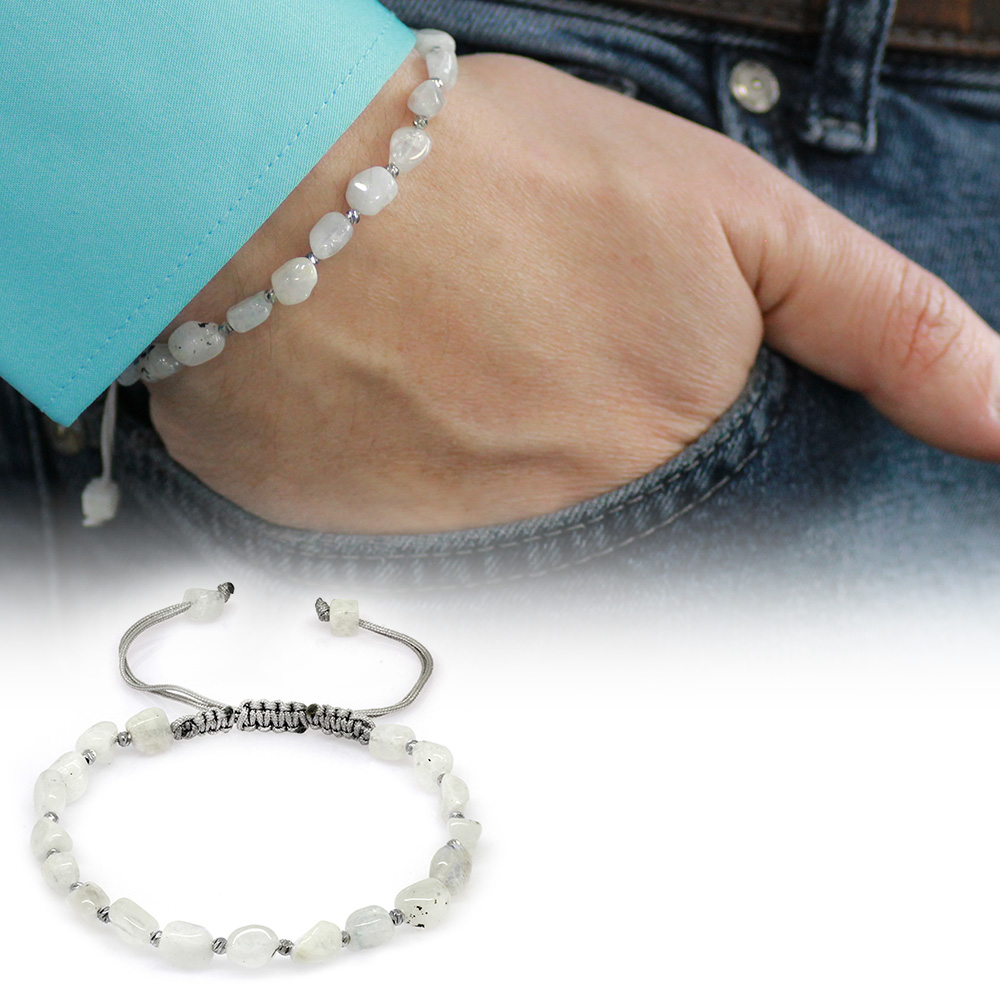 Makrome Örgülü Naturel Kesim Ay Taşı Doğaltaş Erkek Bileklik